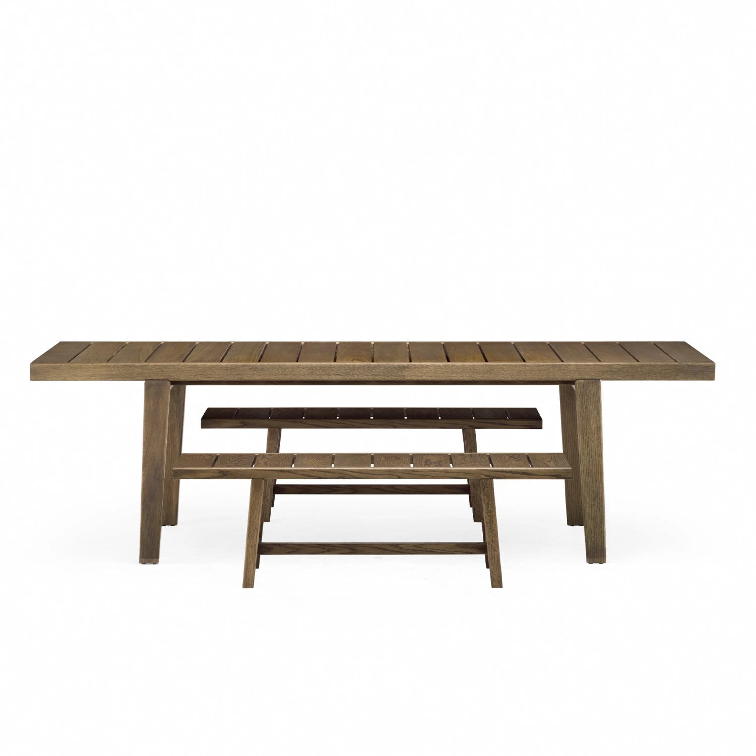 The 98.6°F family currently include a dining table, dining chair, bench, one-armed lounge chair, coffee table, and side table, all crafted in black oiled European white oak. When used outdoors, this furniture will age and adopt a beautiful silver grey/dark grey patina over time.