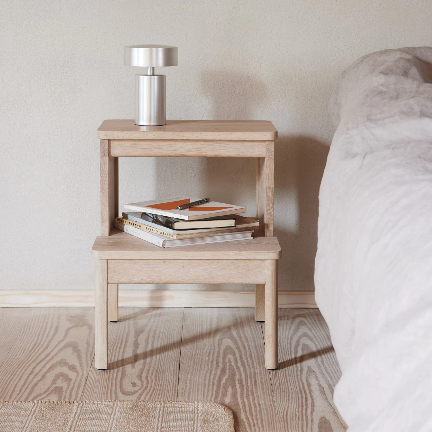 This sturdy and versatile self-supporting stool can be used in any space as a step stool, a bedside table or extra seating. The A Line Stepstool features a number of important design elements, such as curved edge detailing, an extended lower step that creates extra space for storage.