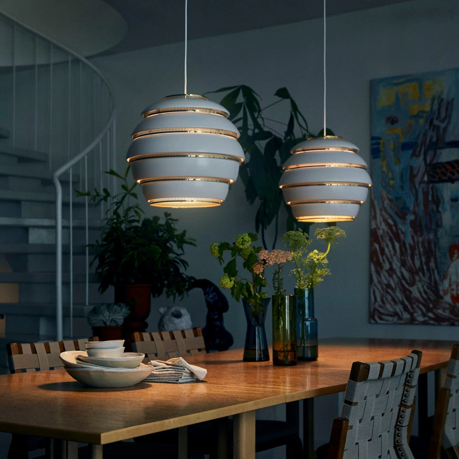 The A331, nicknamed “Beehive,” is one of Alvar Aalto’s most popular lighting designs. Suitable for homes and public spaces alike, “Beehive” creates a warm, diffuse light when switched on, a result of the ingenious design that features several rows of perforated steel rings.