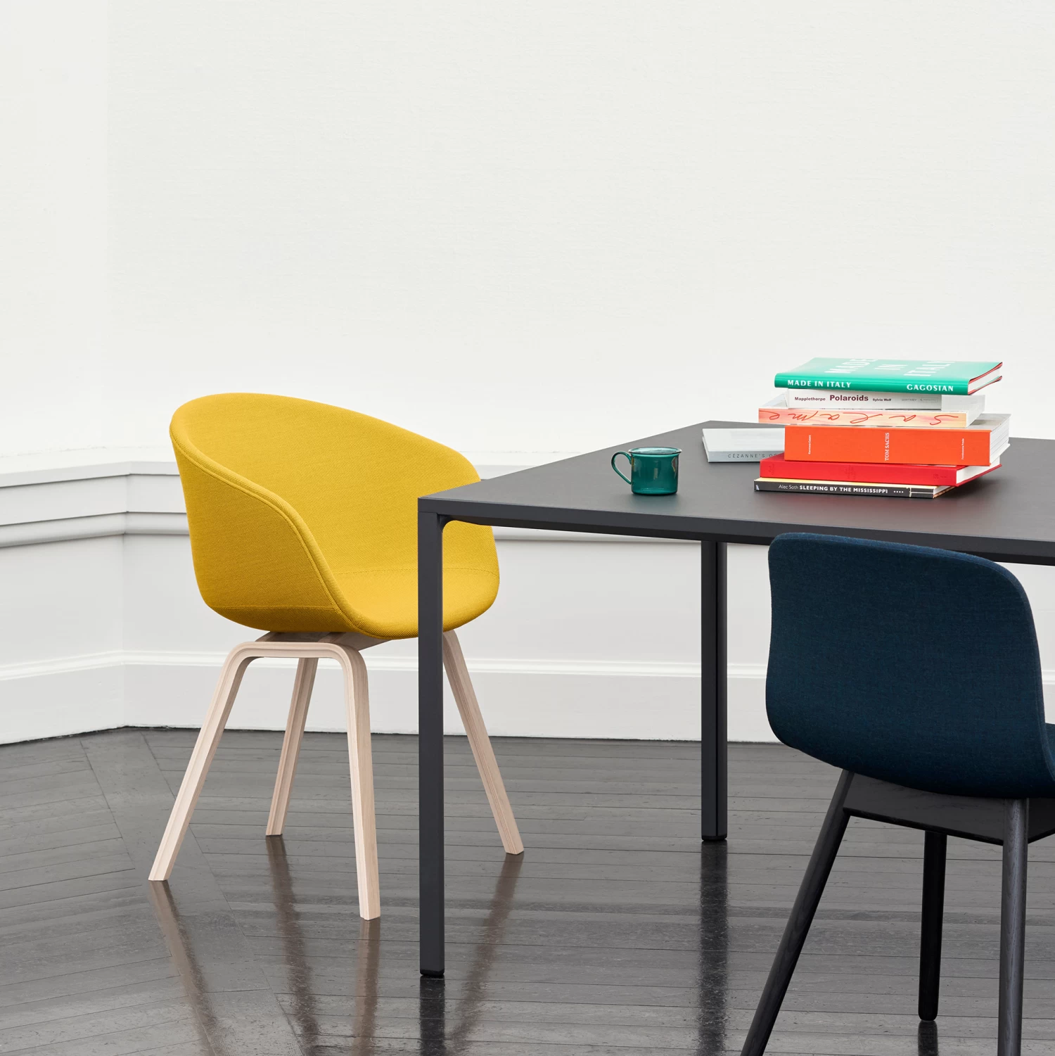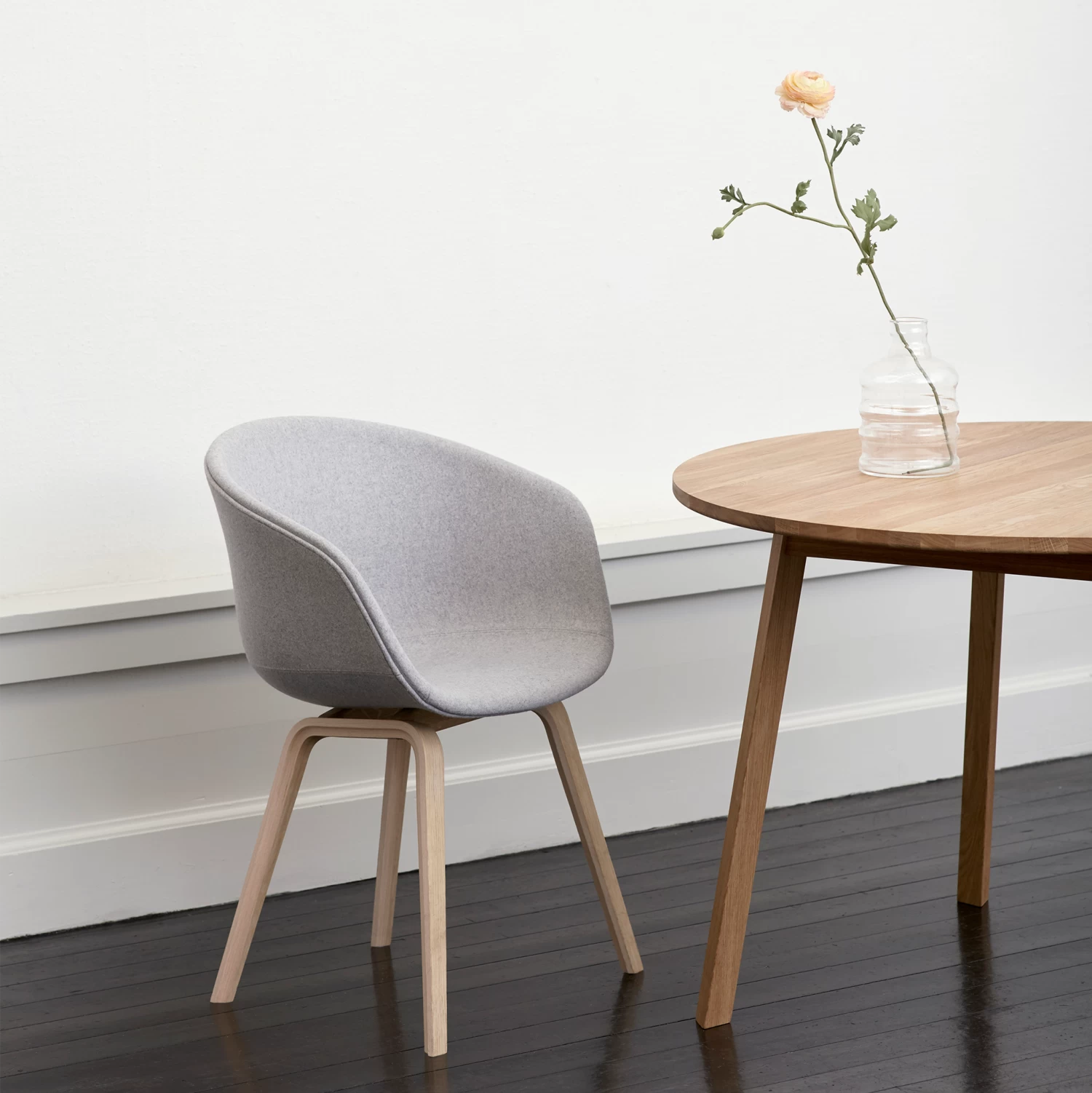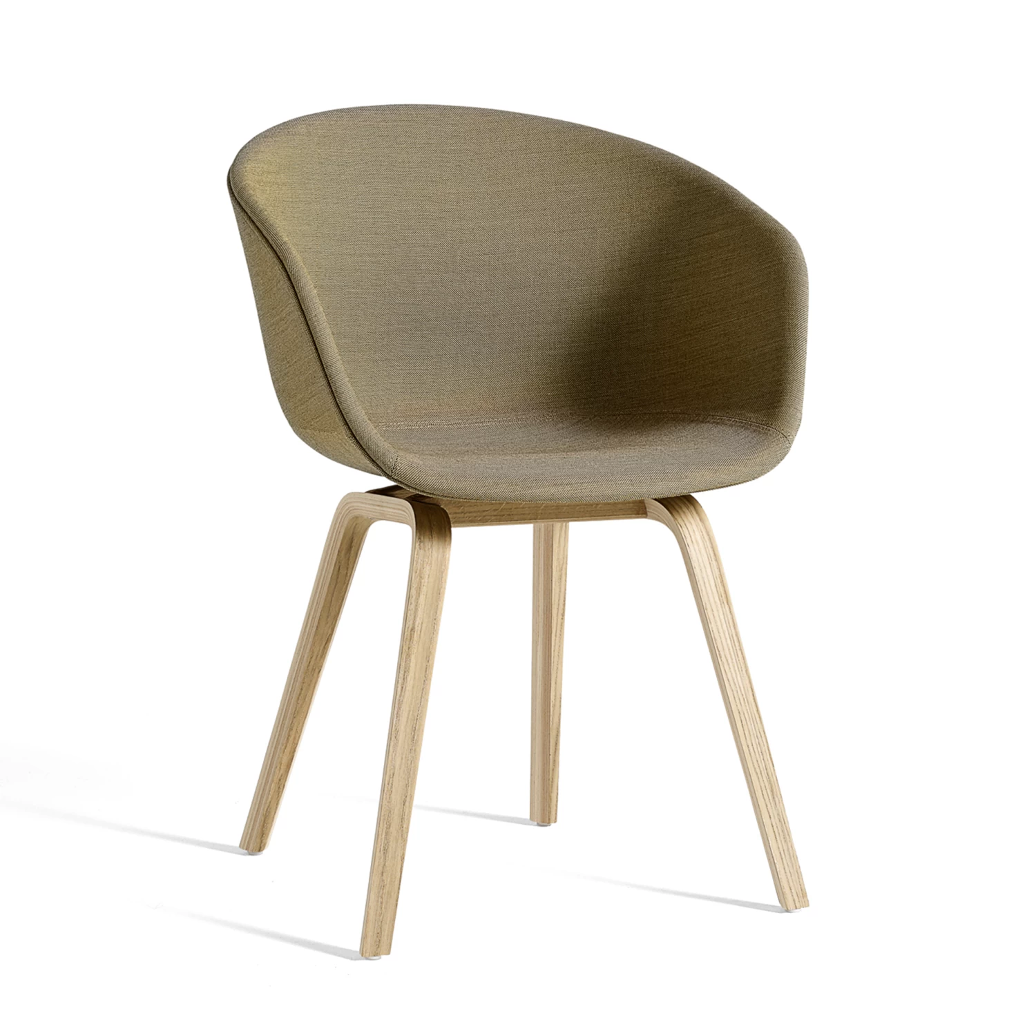 The About A Chair AAC 23 design exudes the functional simplicity that is characteristic of this entire series. The solid shell comprises a curved back with armrests in polypropylene, providing excellent comfort and a soft, unified silhouette, while the four-legged wooden base adds a timeless, classic expression, ensuring greater stability and a longer lifetime.