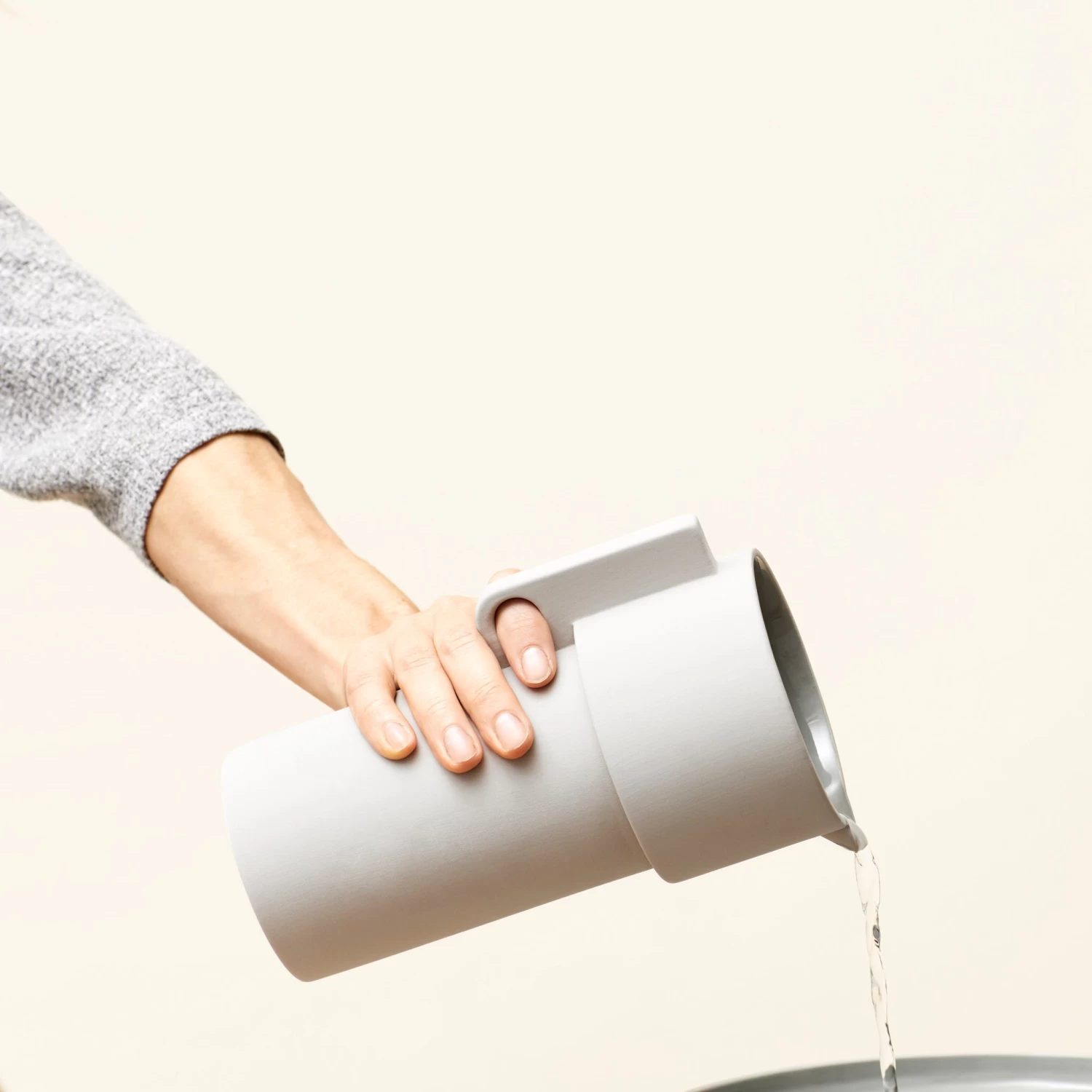 The Alcoa ceramics line stands out. It is clear and simple in form. The handle creates a functional and recognisable expression for the line. The surface is a balanced matt grey on the outside and a high gloss grey on the inside to give a subtle contrast.