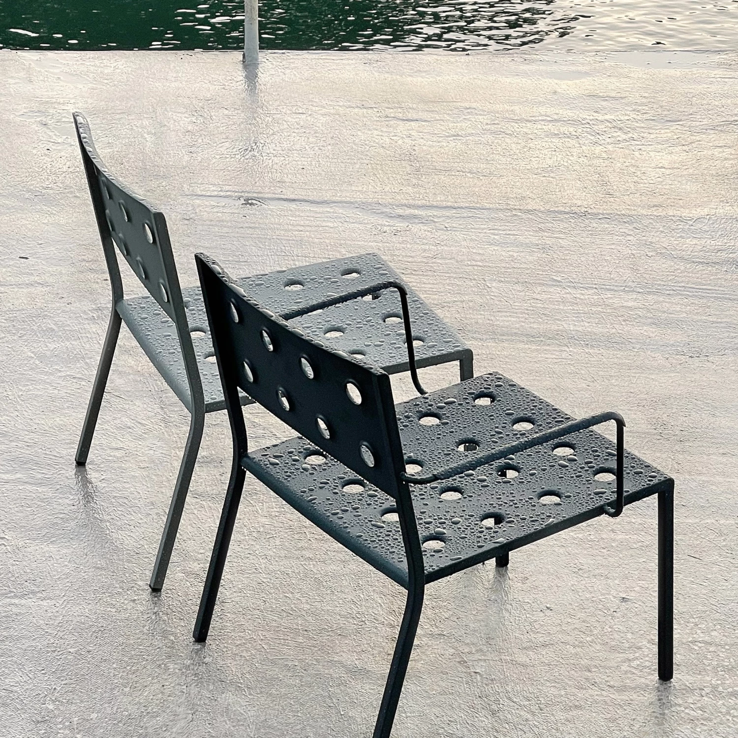 Comprising an assortment of chairs, tables and benches, the Balcony family’s expression is characterised by the symmetrical holes incorporated into the design. The presence of these laser-welded holes softens the aesthetics, as well as providing extra stability, creating a versatile collection that offers strength, comfort and a distinctive appearance.