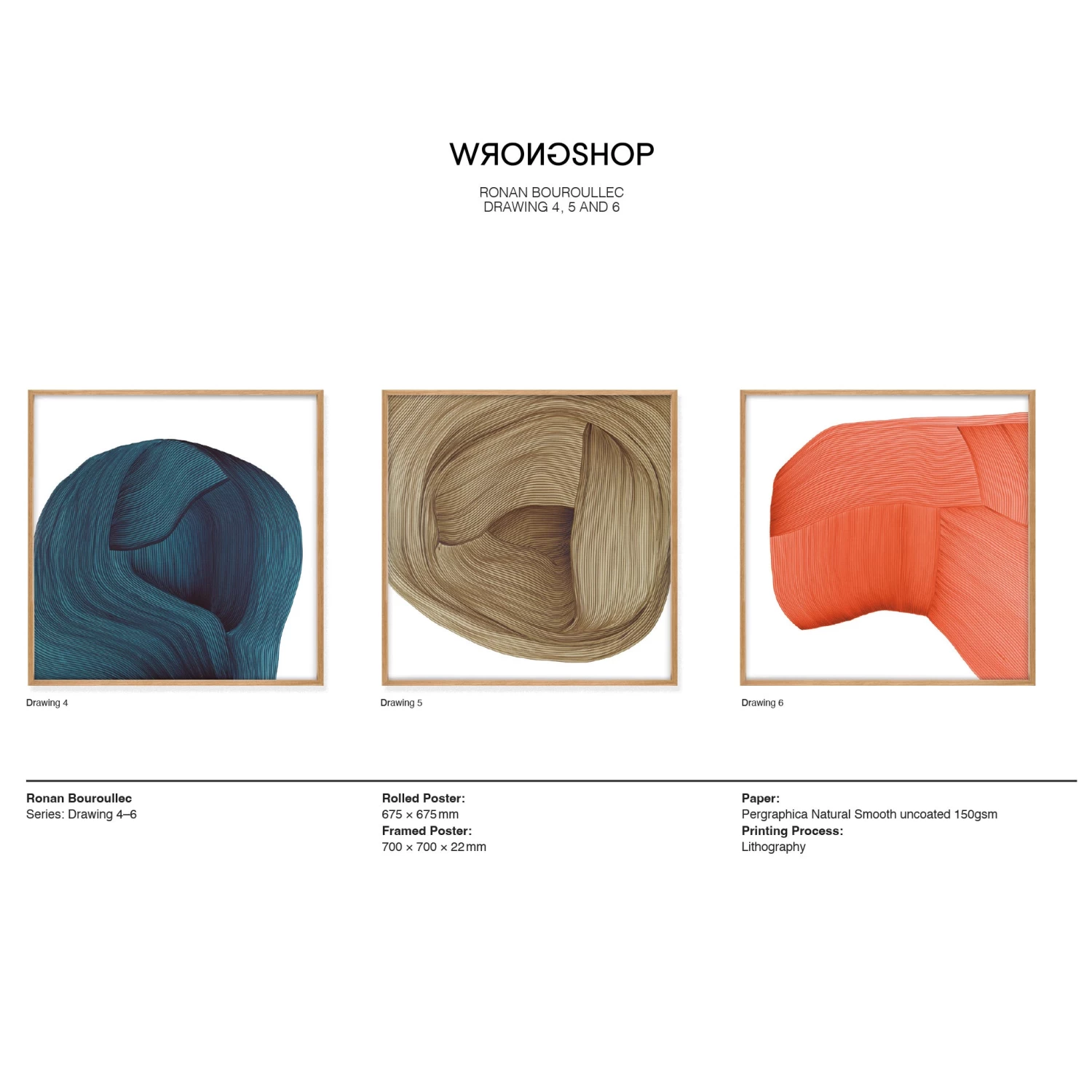 Ronan Bouroullec’s fluid, abstract motifs and visible brush strokes shape this exceptional poster series. Display individually, or hang Drawings 4, 5 & 6 as an captivating set.