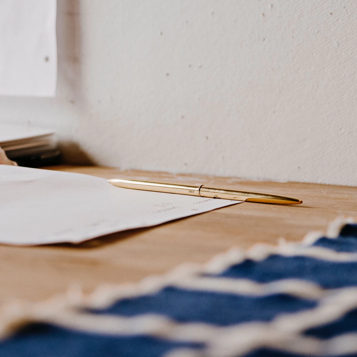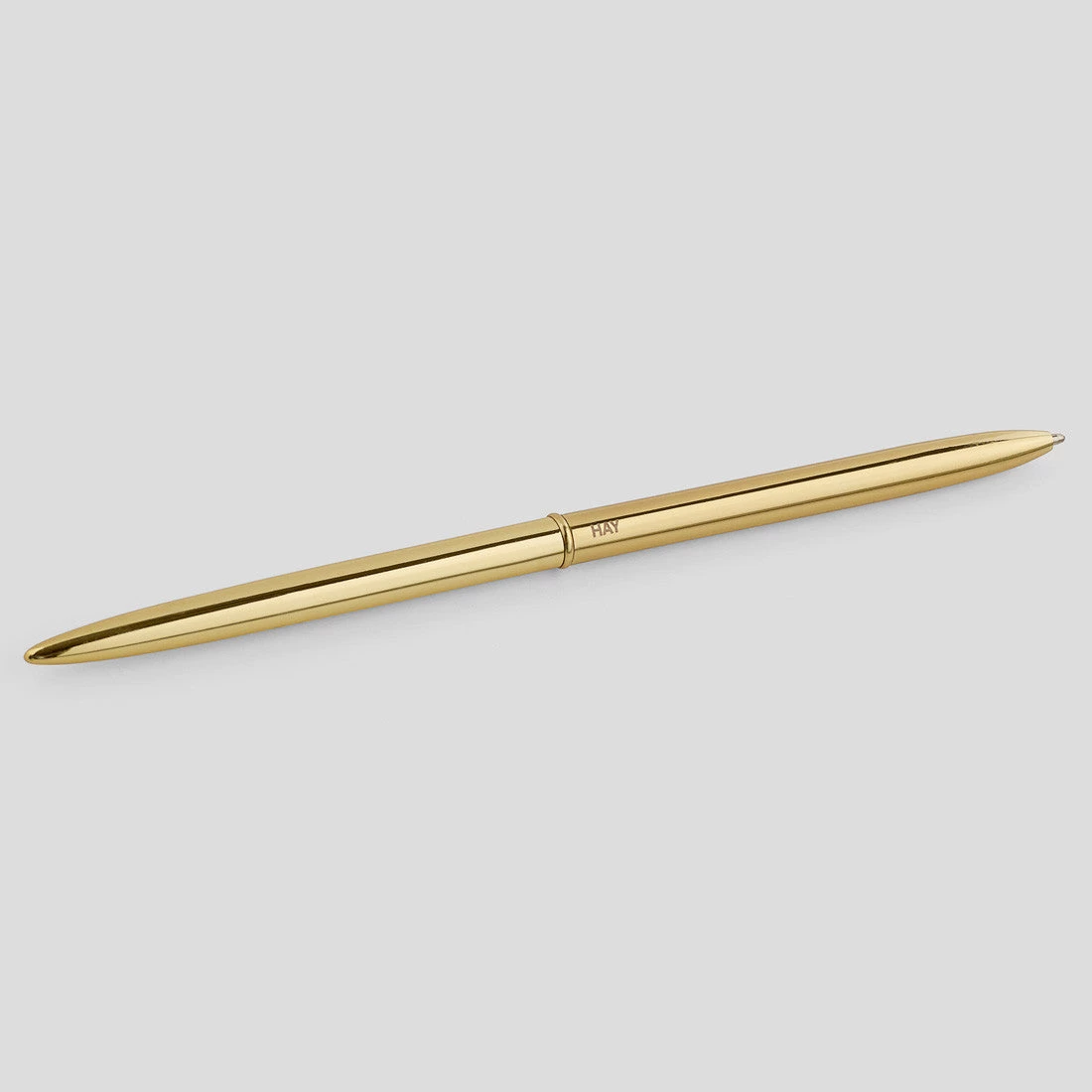 Bullet is a sleek, golden ink-filled pen. Although it is not refillable like the classic fountain pens, it feels equally perfect in your hand with its weighty metallic feel.