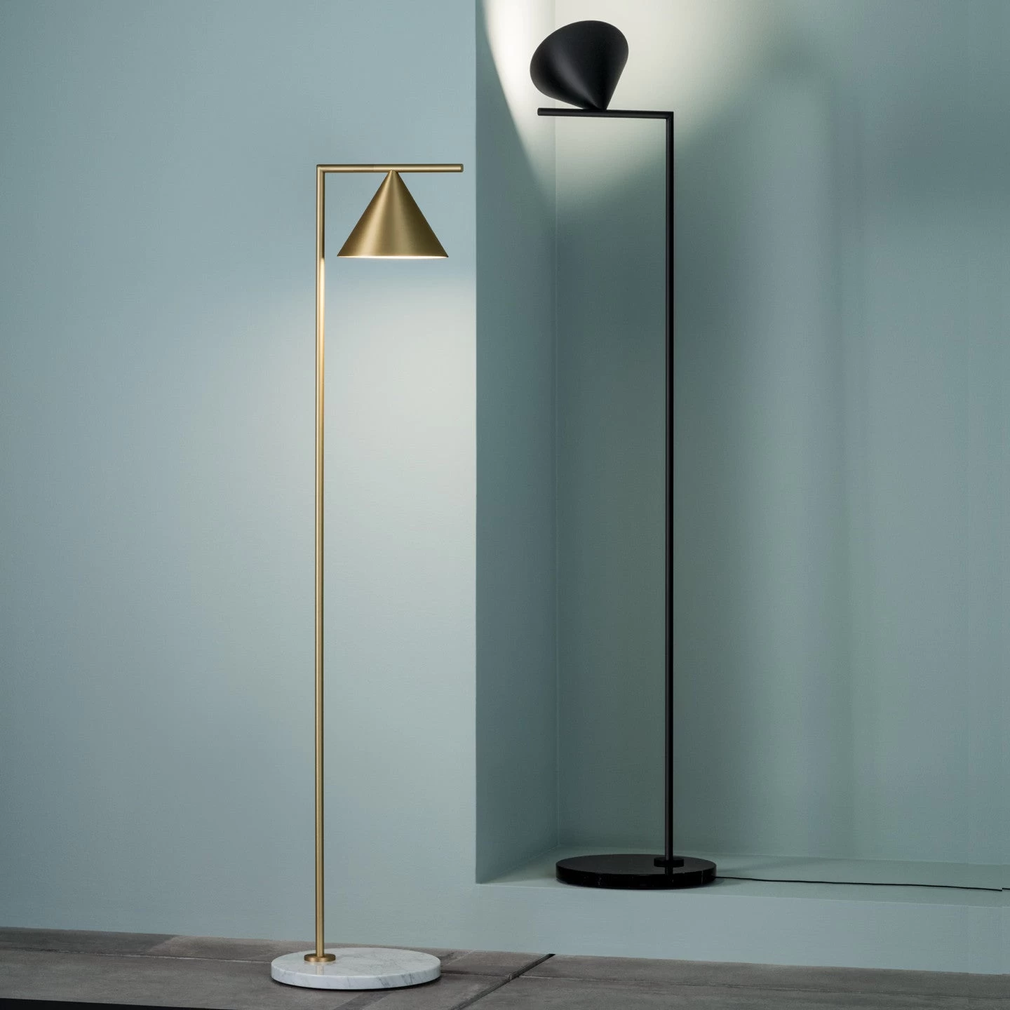 Captain Flint, designed by Michael Anastassiades, is a floor lamp with a dual purpose. It is both an up lighter, illuminating the space with enough ambient light and can be rotated to become a dim companion for reading. The notion of balance is prominent in this fixture, a cone resting delicately on its point on a rotating horizontal metal rod.