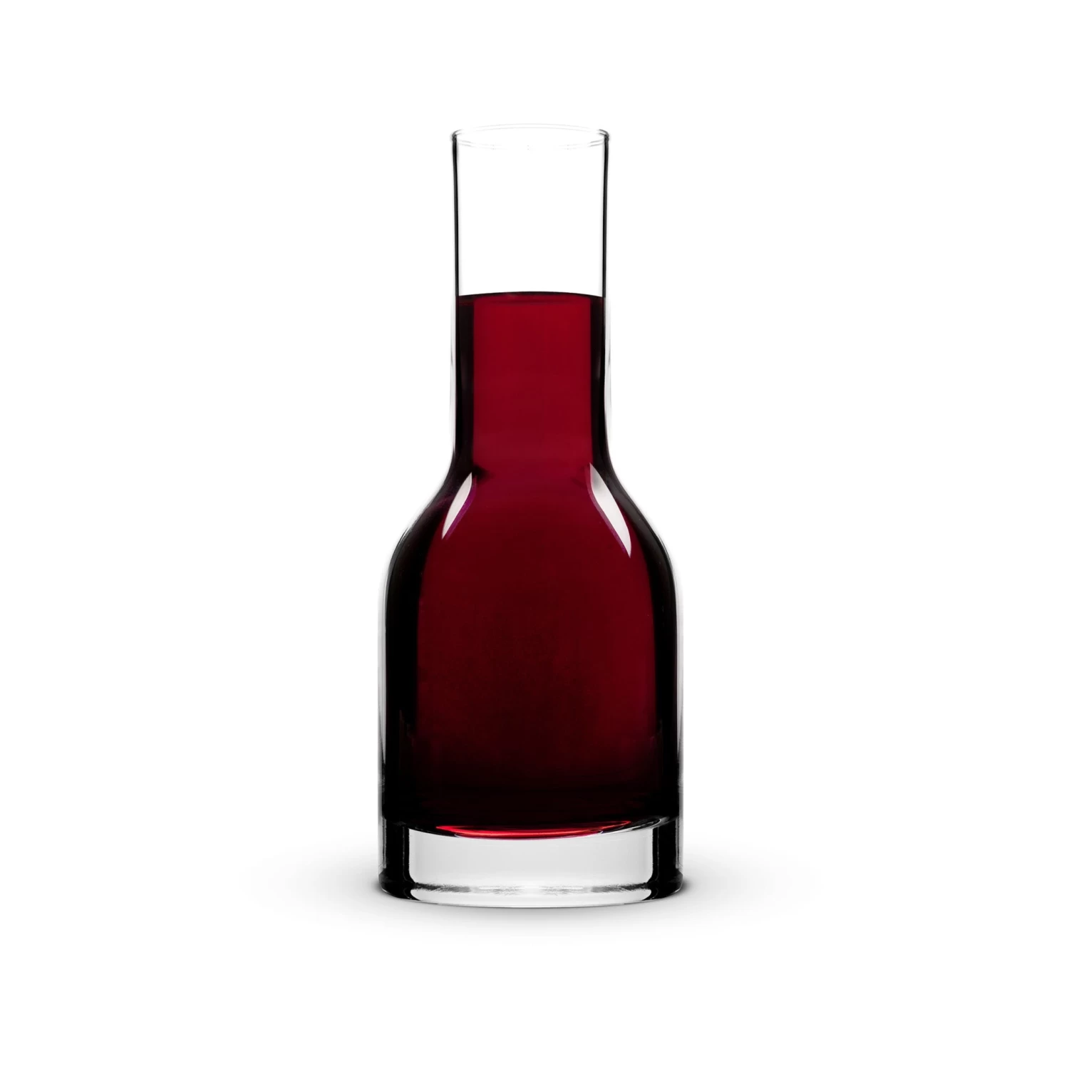 The form of this container for water or wine inverts the geometry of the goblet, setting a cylinder on a hemispherical foot. In use the carafe carries a dramatic column of coloured or clear liquid; empty it becomes a vehicle for the play of light and reflections.Â