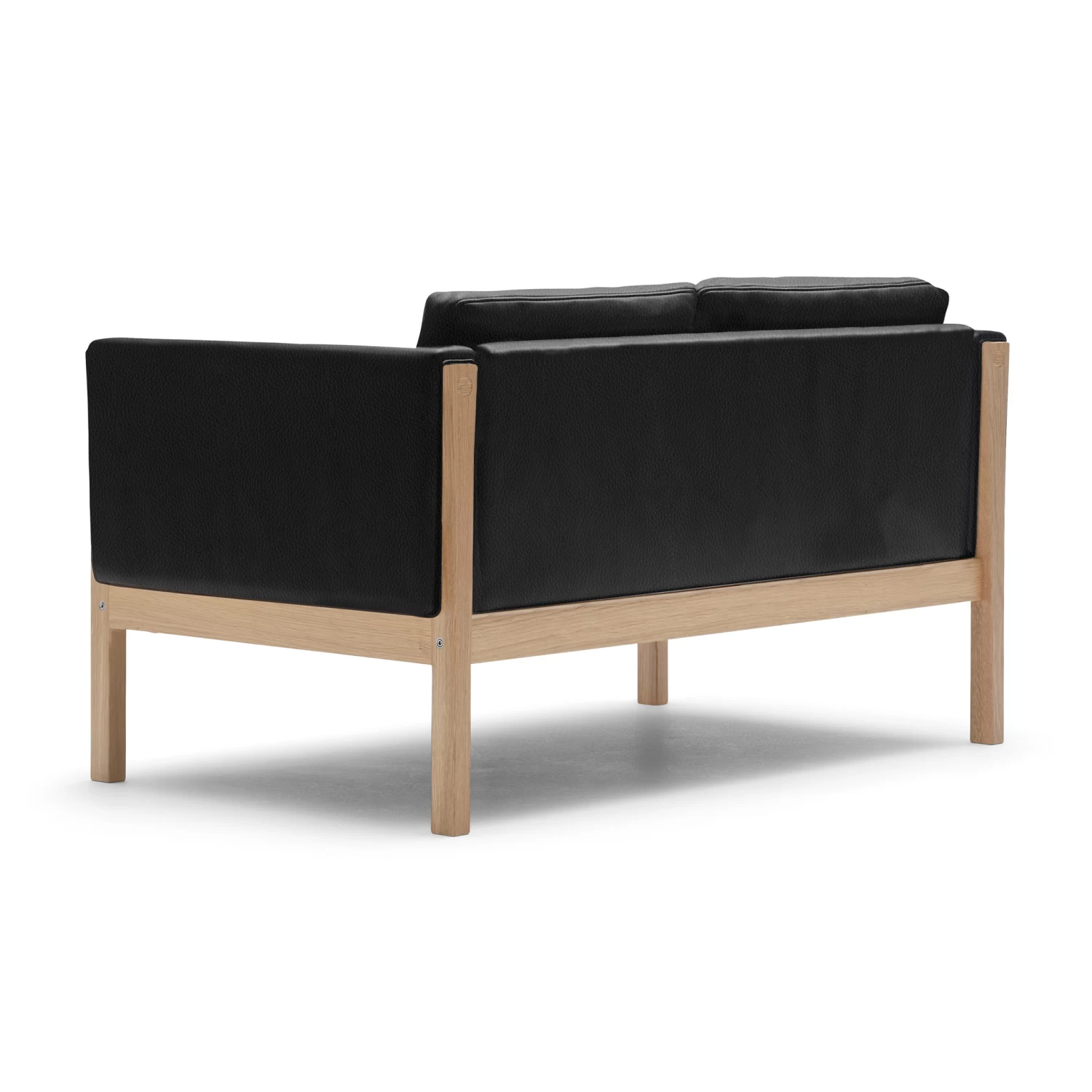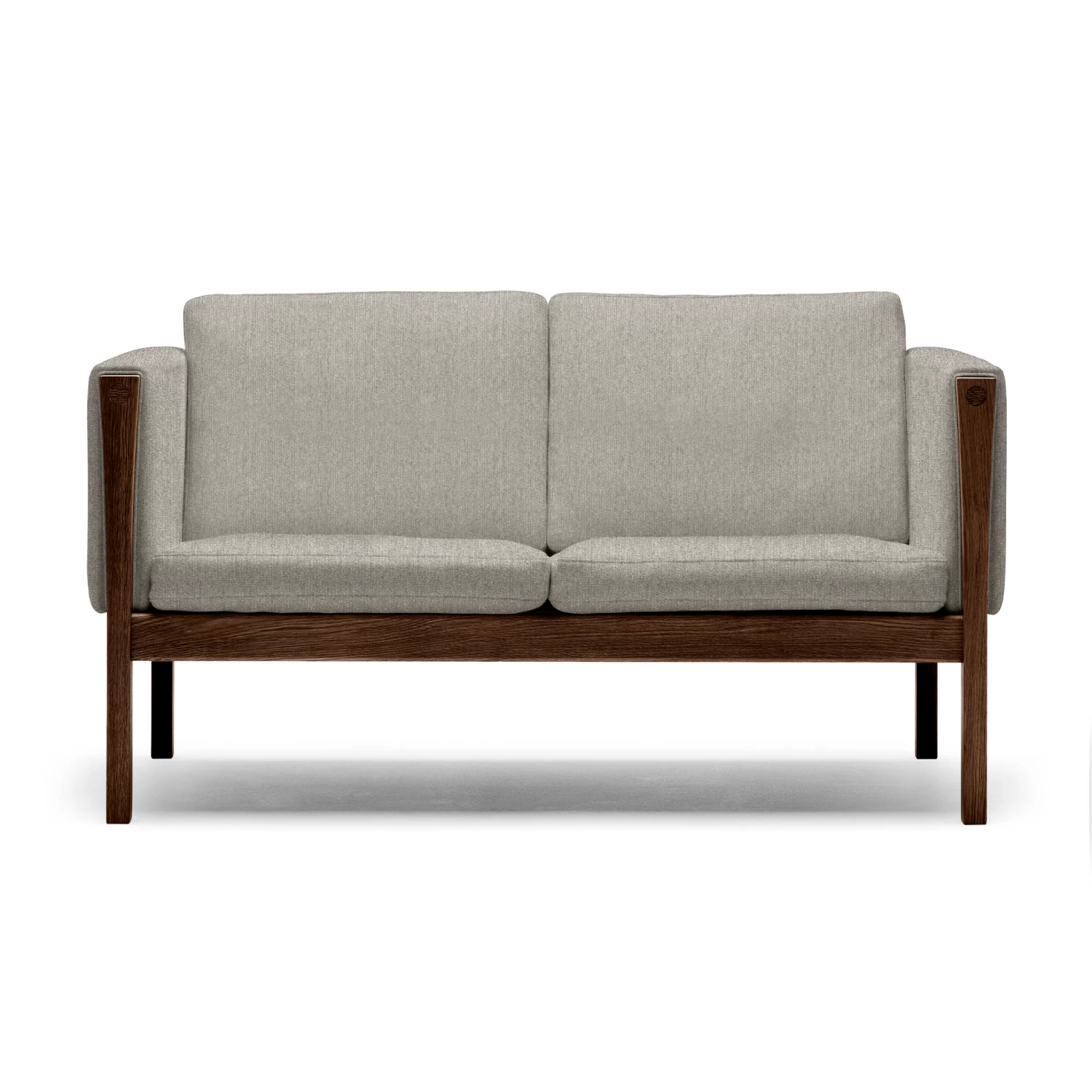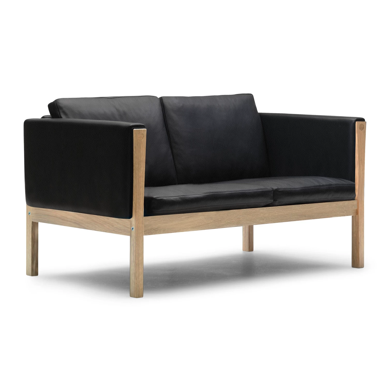 The CH162 sofa for two people was designed by Hans J. Wegner in 1965. Despite a geometric appearance, the CH162 is a soft and comfortable sofa with raised sides and simple but distinctive details.