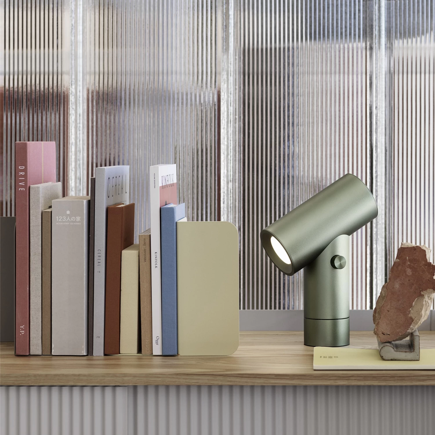 “The Compile Bookend adds a sculptural feature to your shelving system, with clear lines and multiple display options for your favourite books and magazines. The bookend supports itself, ensuring unrestricted movement and creative freedom of use. It serves as a functional element, adding colour and character to shelves at home or in the office.”