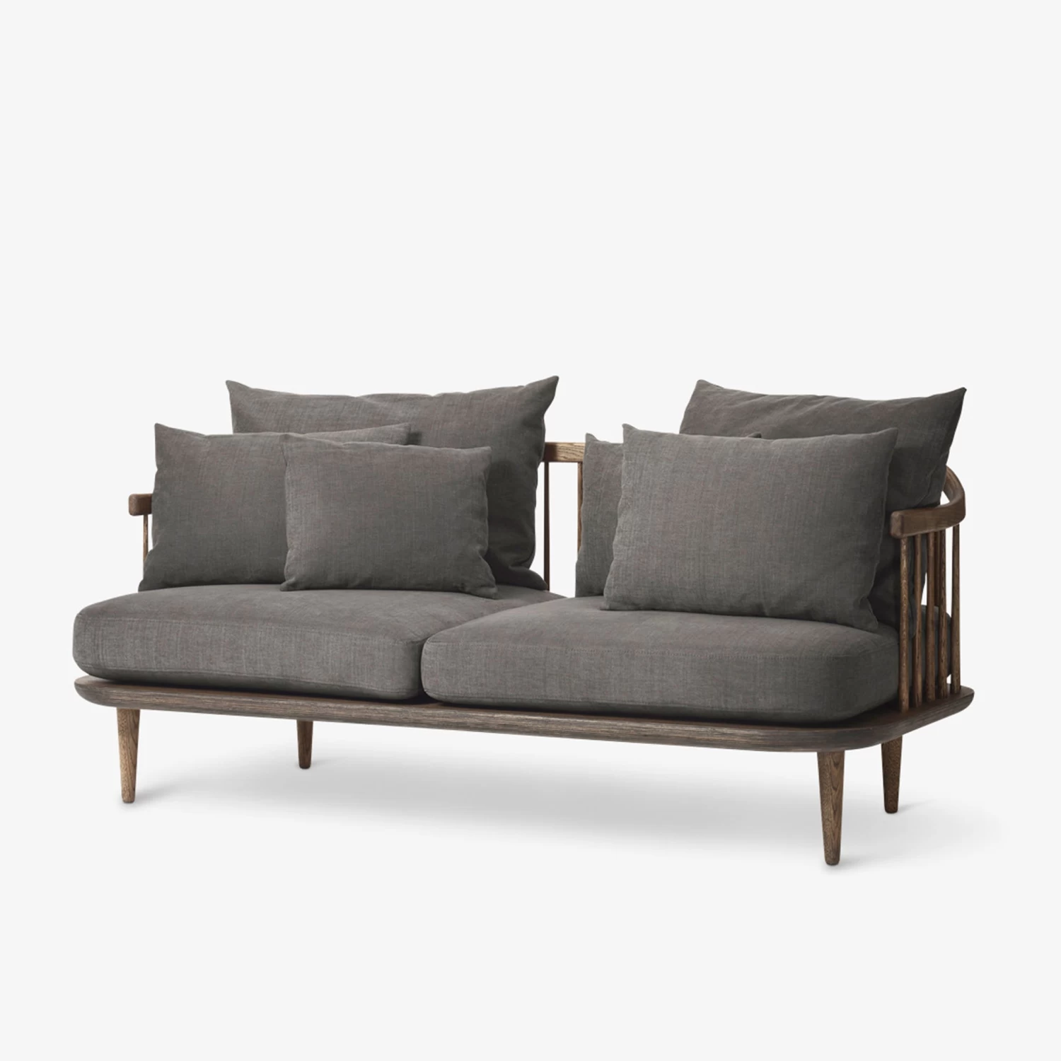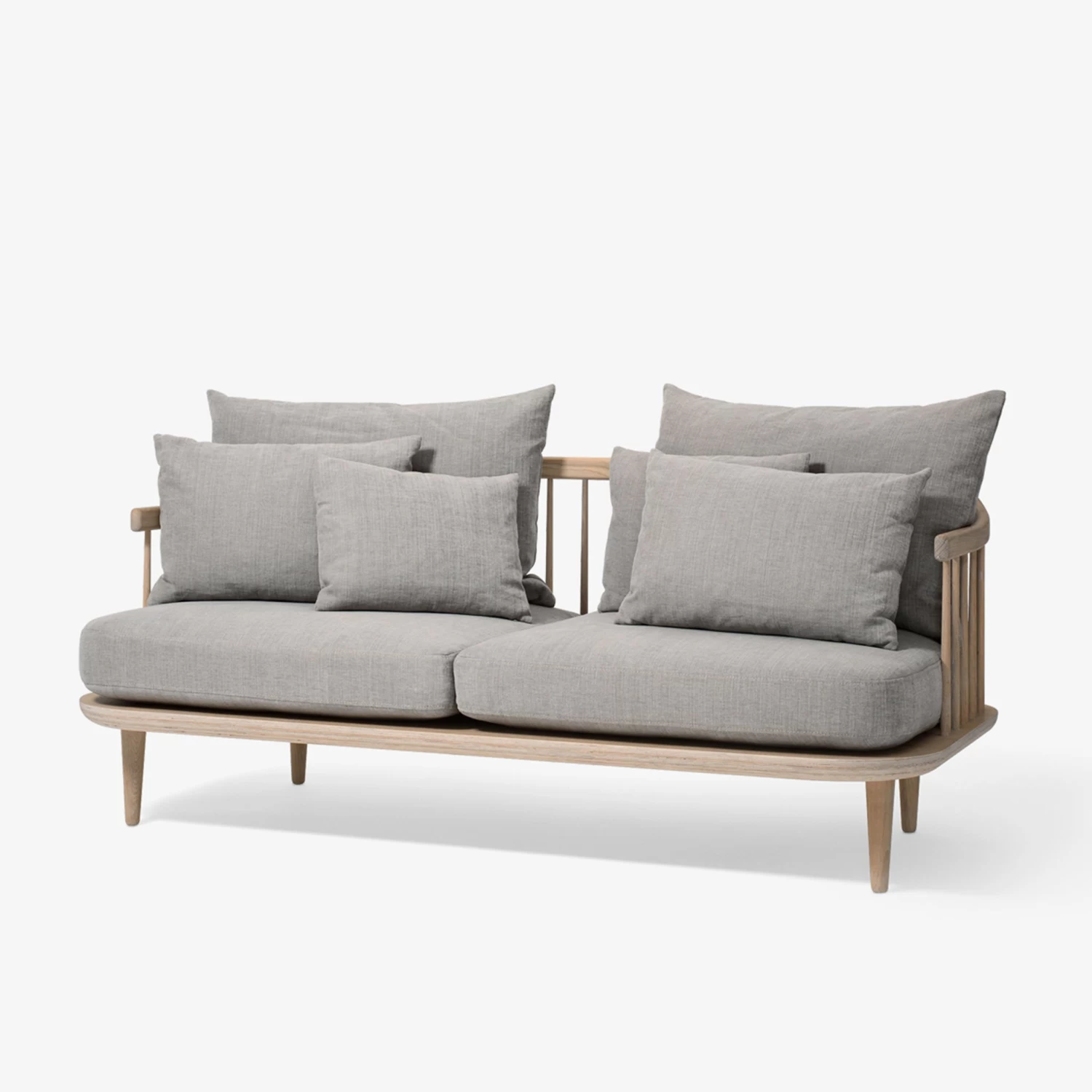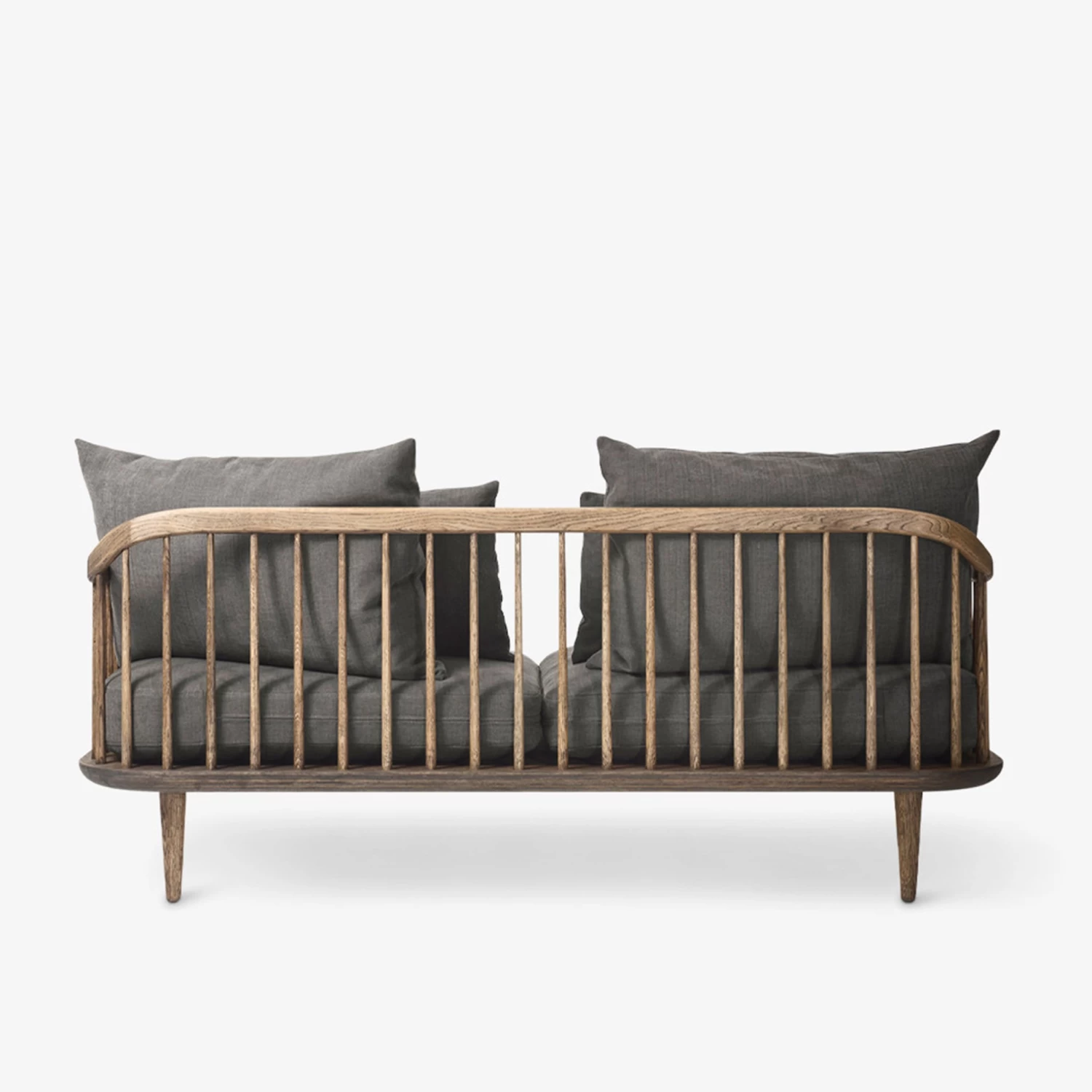 The Fly Lounge Series was created with the ultimate comfort in mind. The lovely loose cushions that comprise the back can be arranged and rearranged to suit your personal preferences. The design alludes to a Nordic aesthetic, such as the slatted back, the handcrafted solid oak frame and the organic shaped elements.