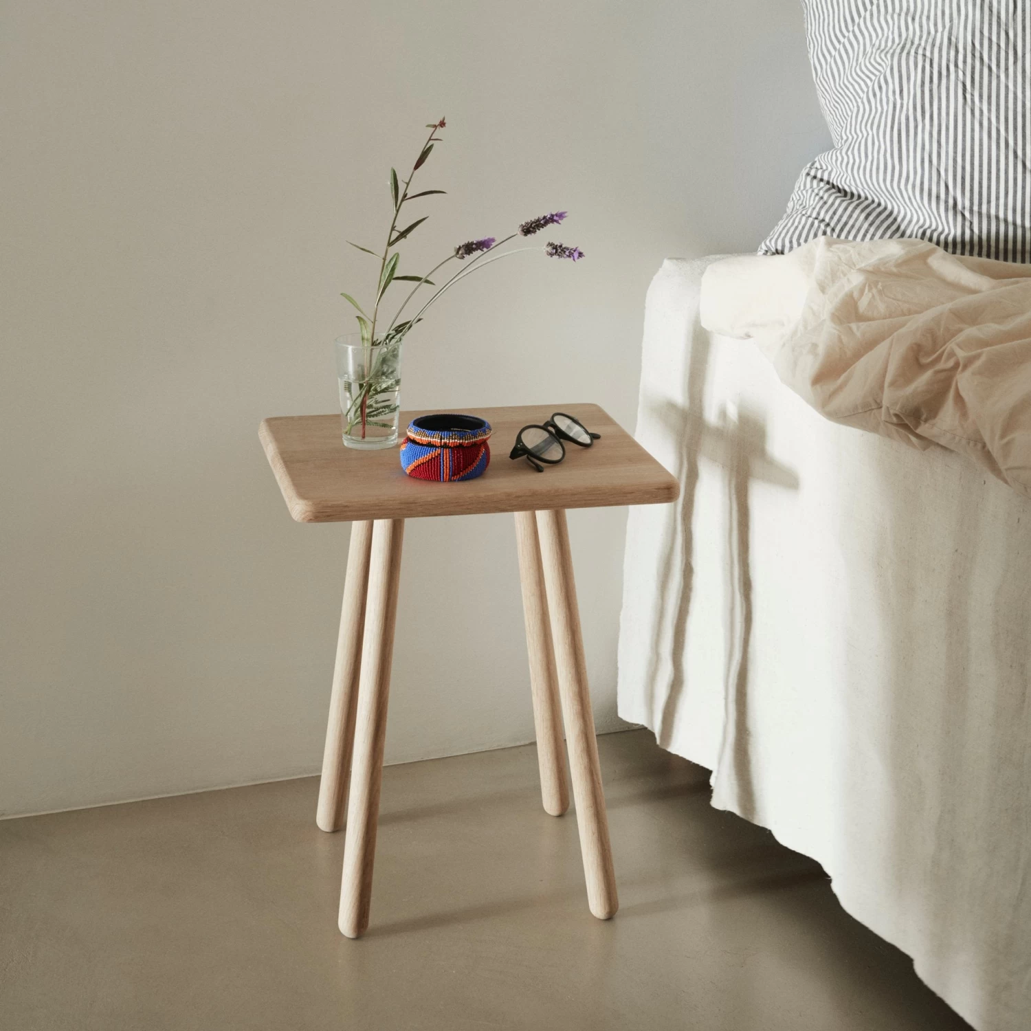 Georg side table is designed like the stool in the series – only without the cushion and the groove for the leather strap. Simple, flexible and extremely versatile, the side table is easy to integrate in most home decors. Use Georg as a bedside table, a side table or a stool.