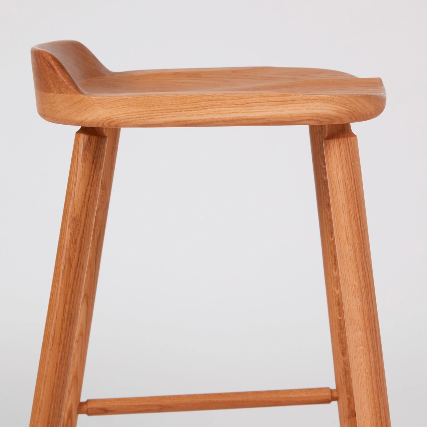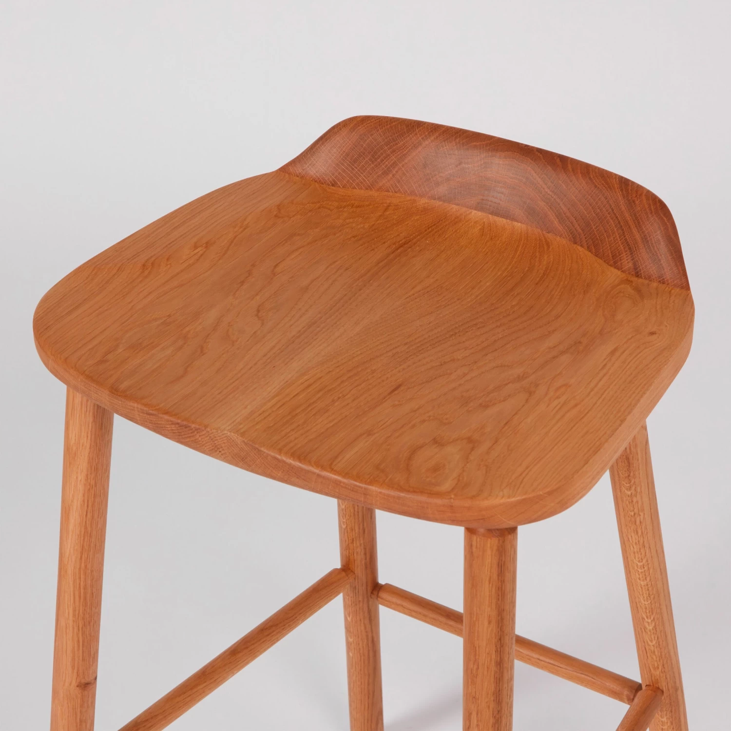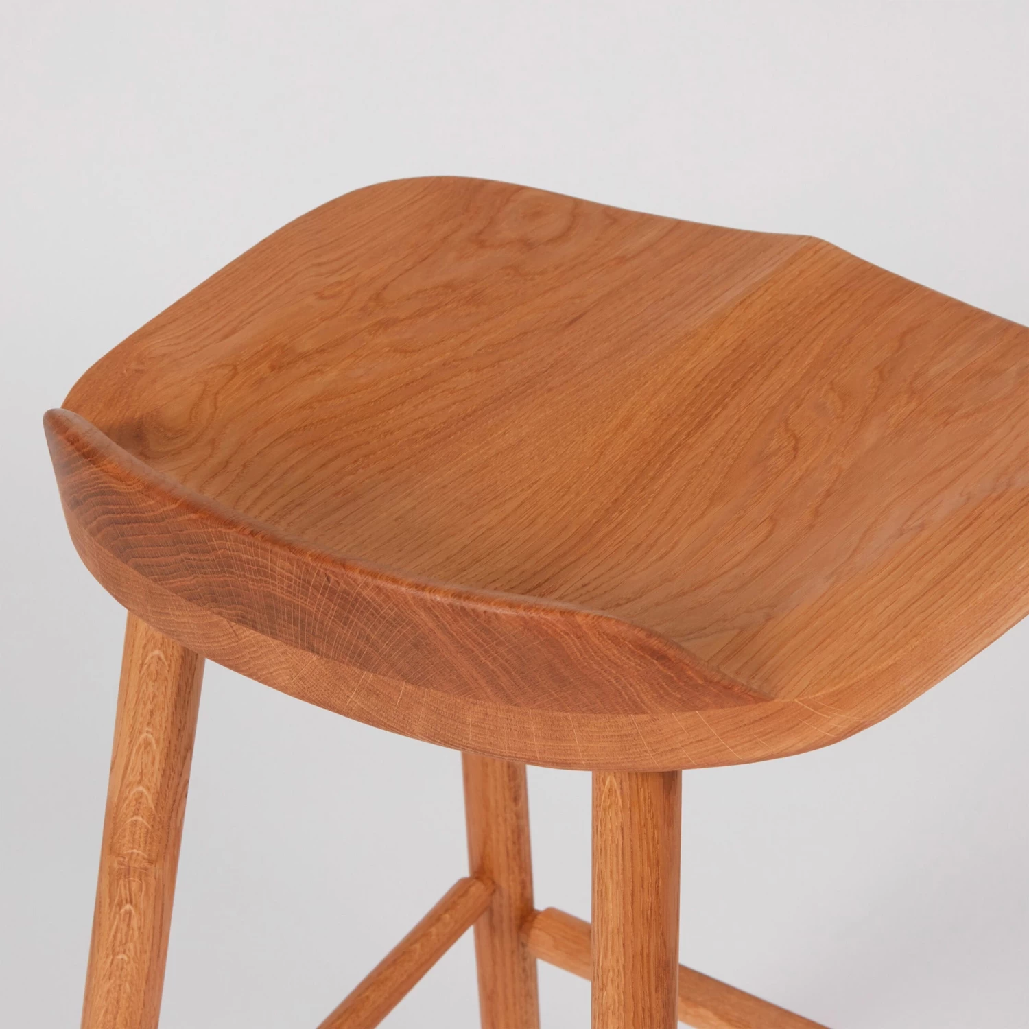 An elegant, solid oak tall barstool without back inspired by Old Furniture, a poem by Dorset born Thomas Hardy – an ode to beauty of furniture being handed down the generations. At home in any kitchen or bar.Â