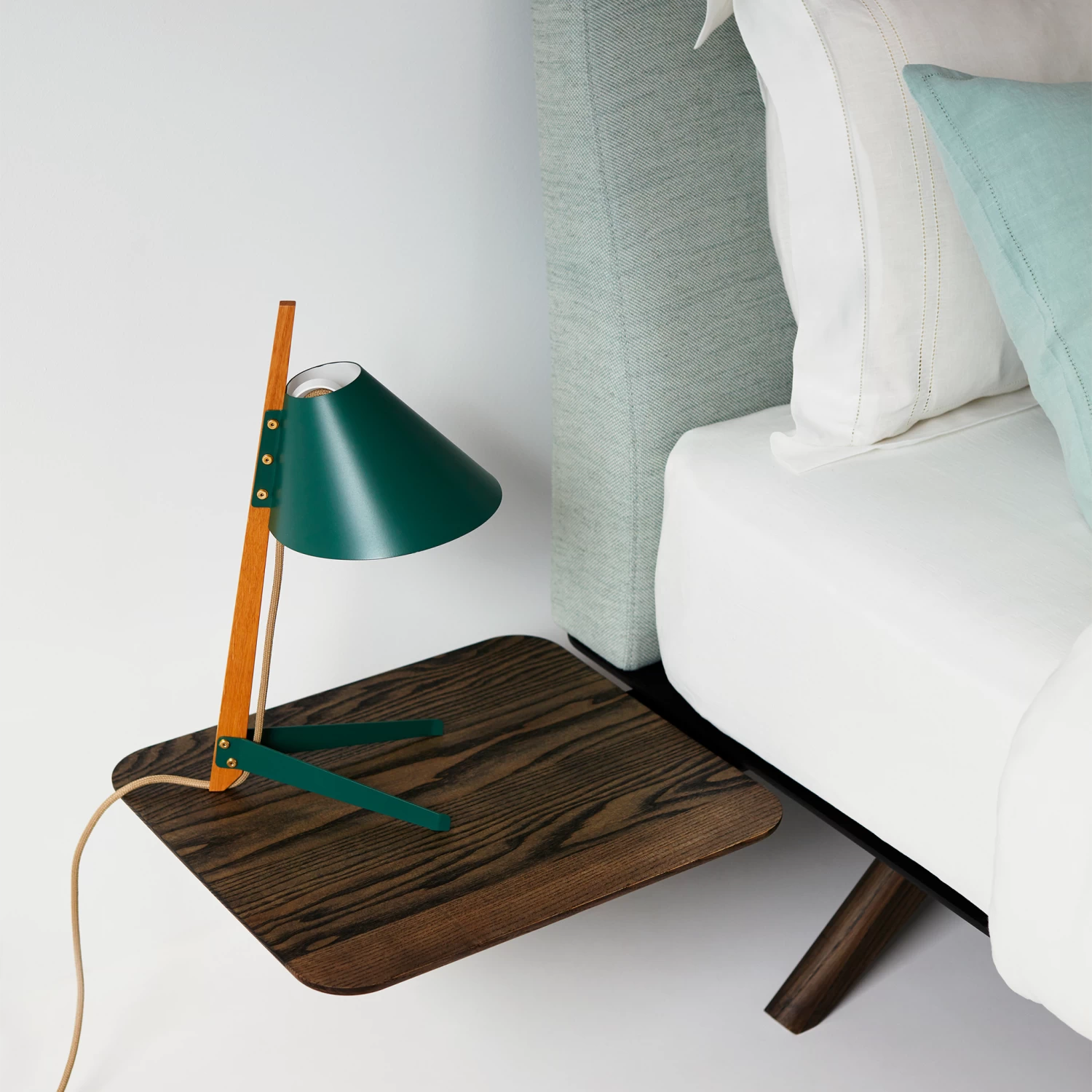 The Hepburn bedside table is a solid wood table that connects intuitively to the underside of the Hepburn bed on the right or left hand side. The slender surface maintains the levity of the Hepburn Bed while providing essential bedtime storage.
