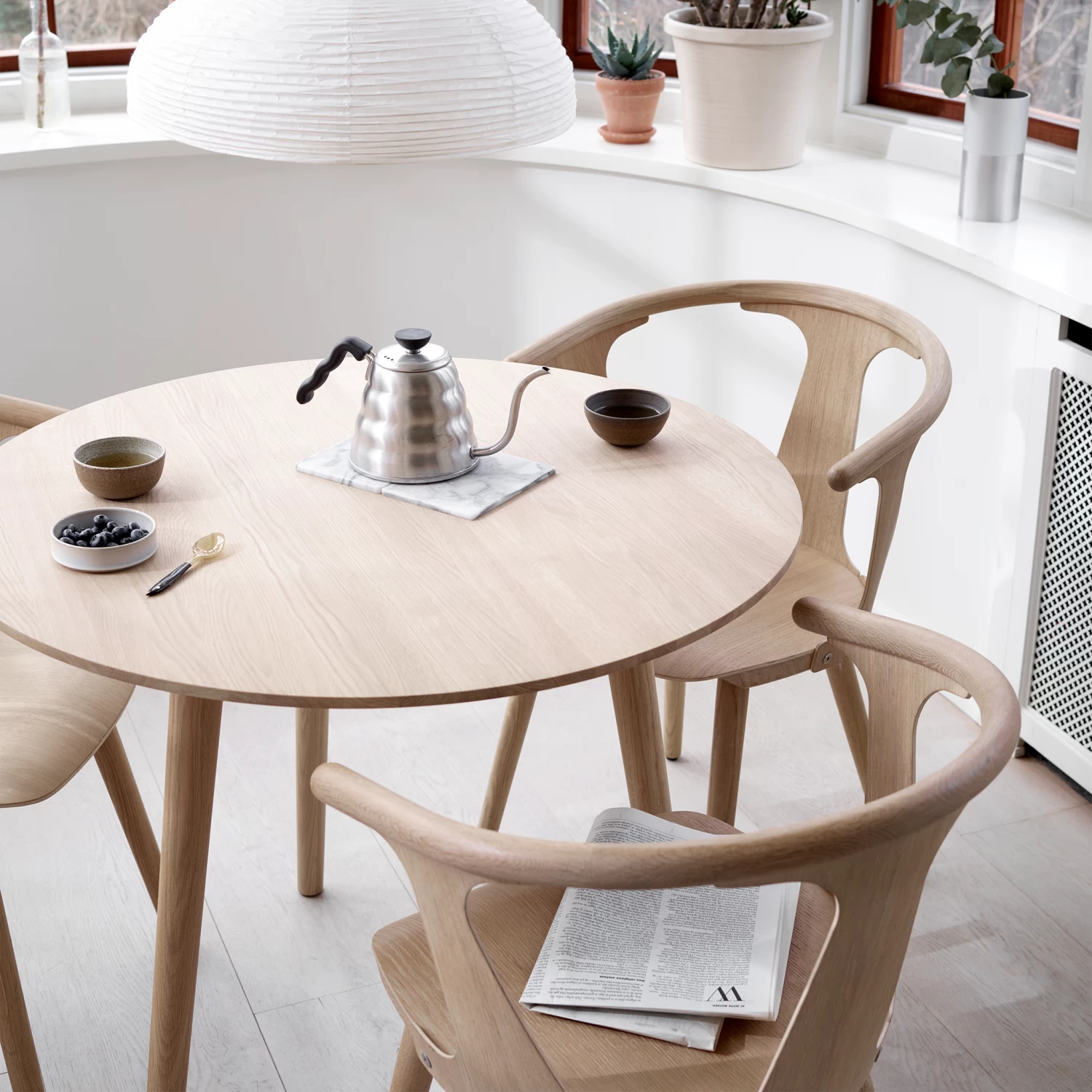 The In Between table is beautifully crafted from solid timber with a functional round shape. The table legs use traditional wood turning techniques. Available in a range of finishes and two sizes SK3 and SK4.