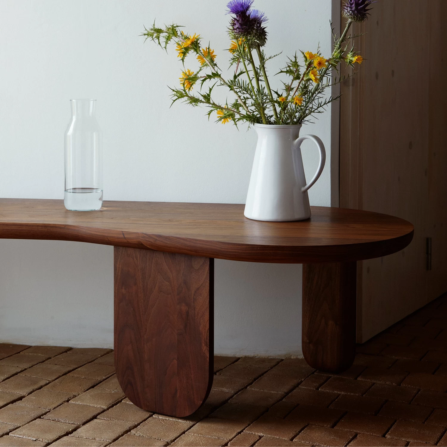 Crafted in solid wood, the Kim Bench has an elegant yet expressive form that reimagines the design language of 1950s American furniture. This multi-functional piece, available in a left or right hand orientation, works well as a low bench, display shelf, or coffee table.