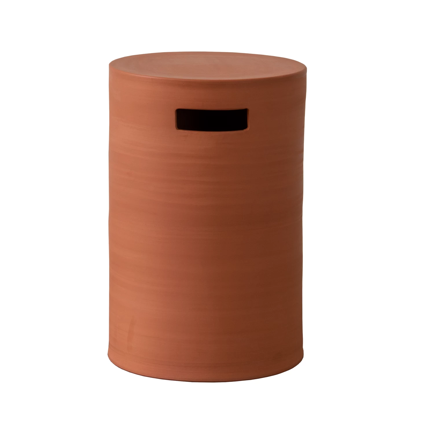 This upright and basic form is significantly weighty in terracotta, the design features two rectangular openings near the top, so it can be moved around the home.