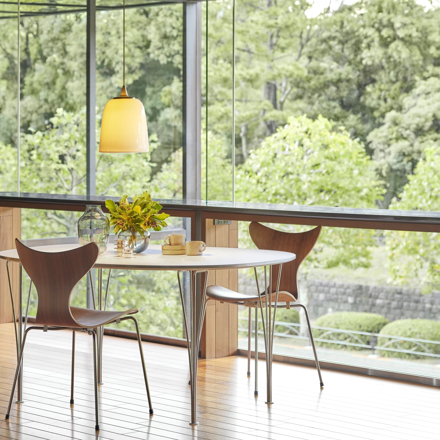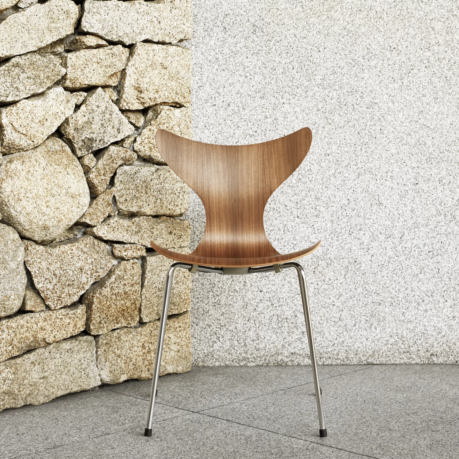 The stackable chair is made from laminated sliced veneer and is the result of an extremely complicated moulding process that ensures the perfect curves and the best comfort.