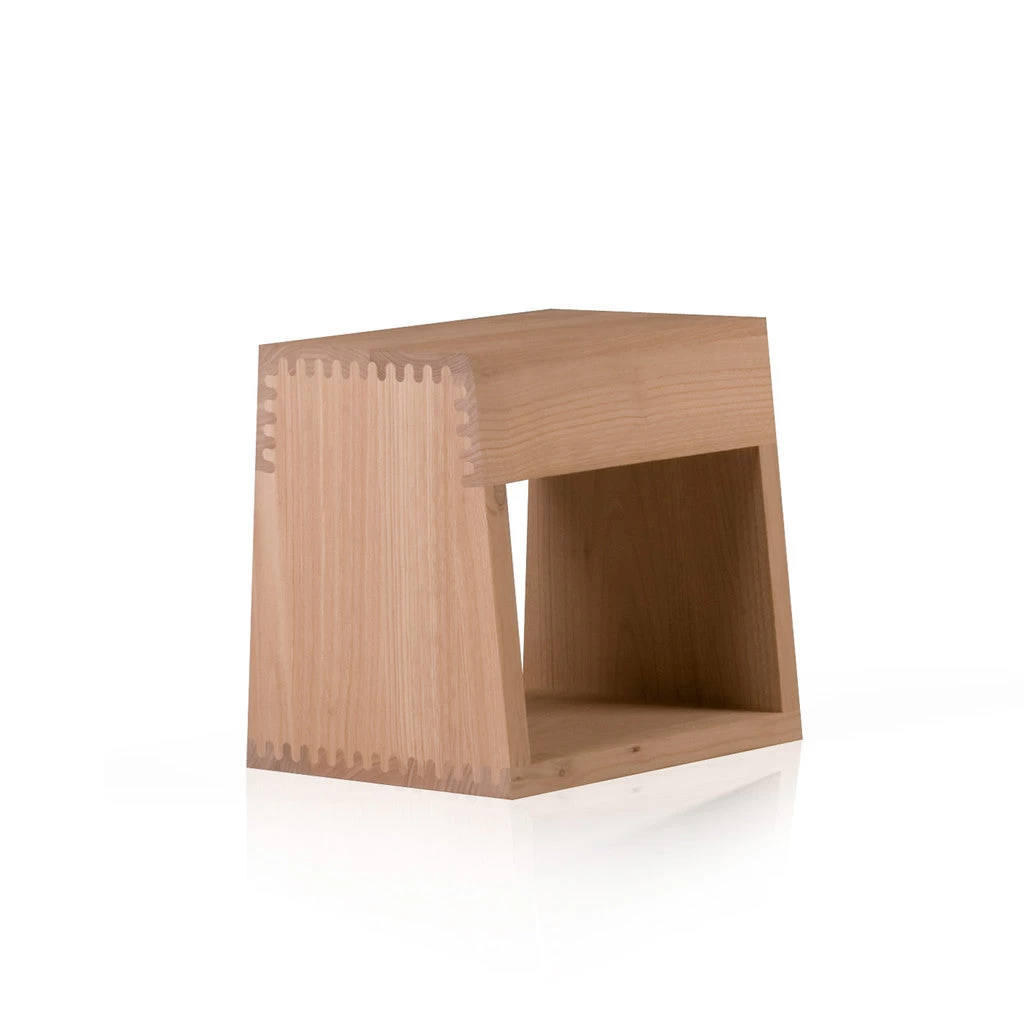 Maia is a multi-functional product that can be used as a side table, stool or step. Solid wood components are connected with complex joinery which Matthew Hilton designed to harness CNC technology. This beautiful joint, also found on Coniston Mirrors, Bretton Bedside, and Overton Table, is not possible by any other means. The product reflects Matthew Hilton’s love of craft – both technological and traditional.