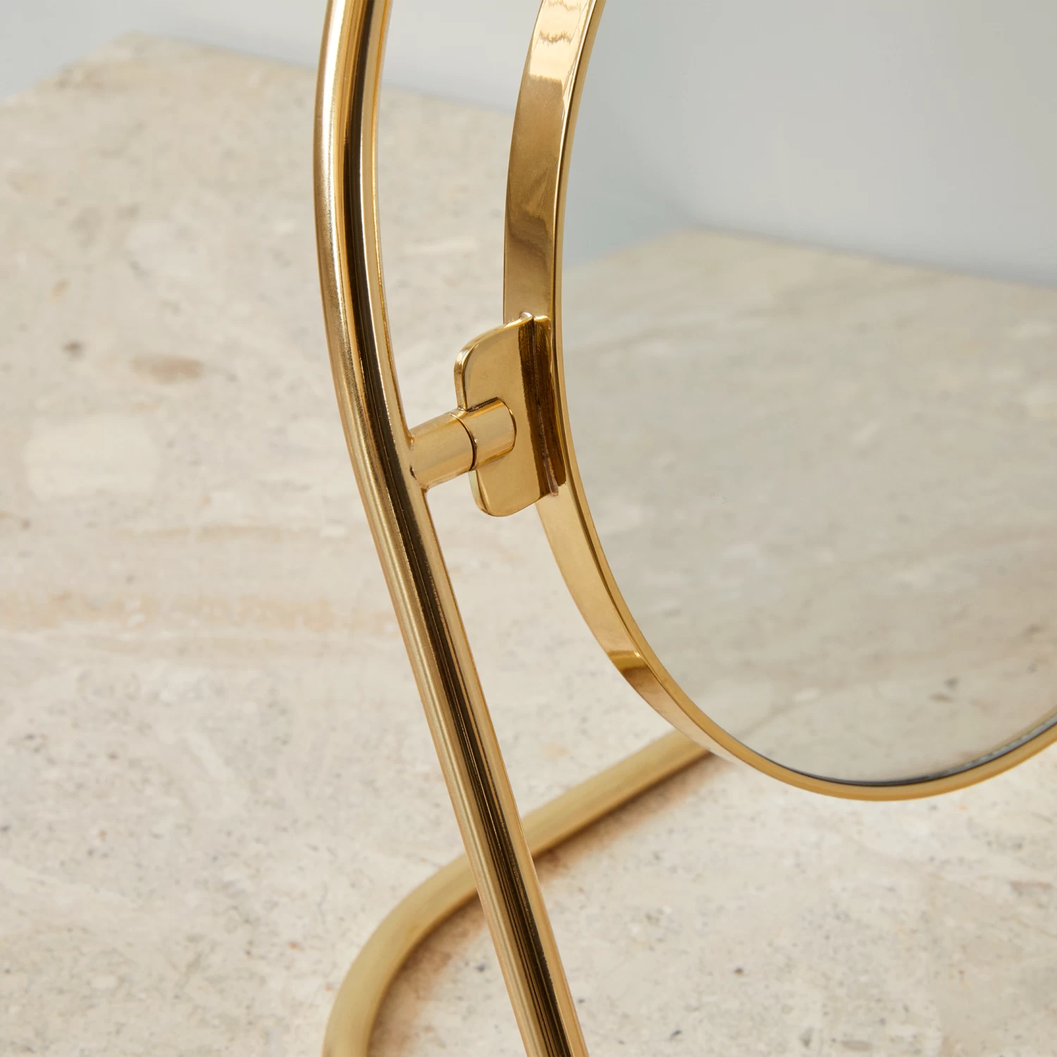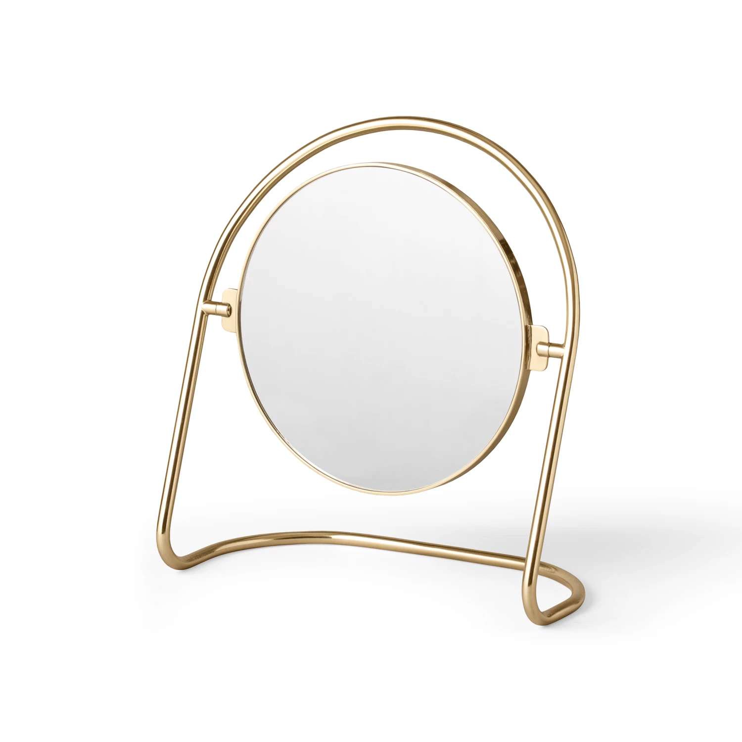 The Nimbus Table Mirror in polished or bronzed brass updates the classic looking glass to modern sensibilities. More than just a mirror, the gently curved halo-like stand brings elegance and visual intrigue to spaces, making it as beautiful to look at as it is to look into.