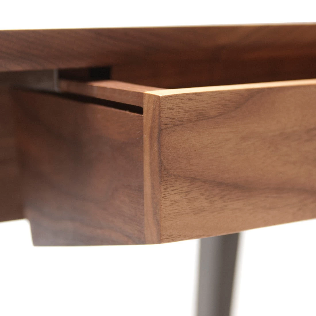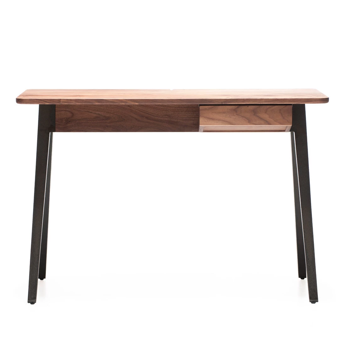 Orson Compact Desk features a beautiful hardwood body, cast iron legs and elegant cable management system like its larger predecessor, but is designed to fit into smaller areas, referencing the school desks of childhood.