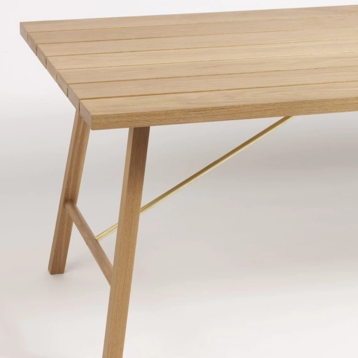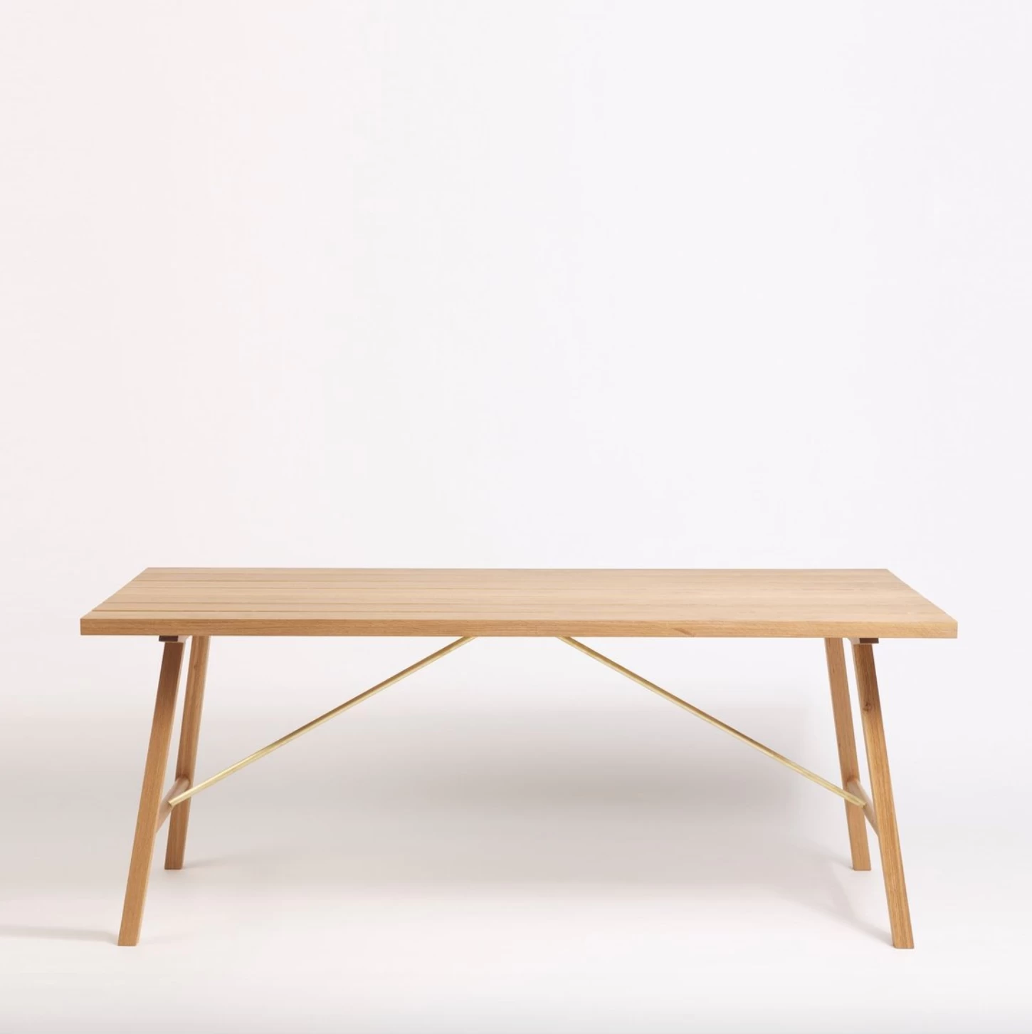 The outdoor version of Dining Table Two. Hardy solid oak ensures this piece of outdoor furniture will remain in great condition for years to come. Both the brass and oak will age gracefully like a yacht’s deck. Perfect for stylish al fresco dining and living.