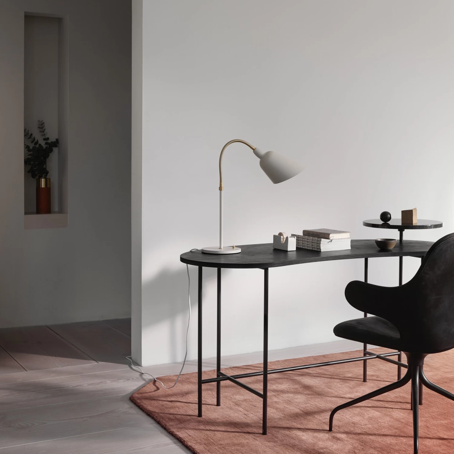 Spanish designer Jaime Hayon brings a suspended sense of animation to a new series of desks which partner two different shapes together in a mix of materials. The result is a freeze frame of motion in a double level design reminiscent of Alexander Calder’s kinetic sculptures. An elongated bean shape and a small round shape are the two different elements appearing in various colours and materials which converge together to create a brilliant balancing act.
