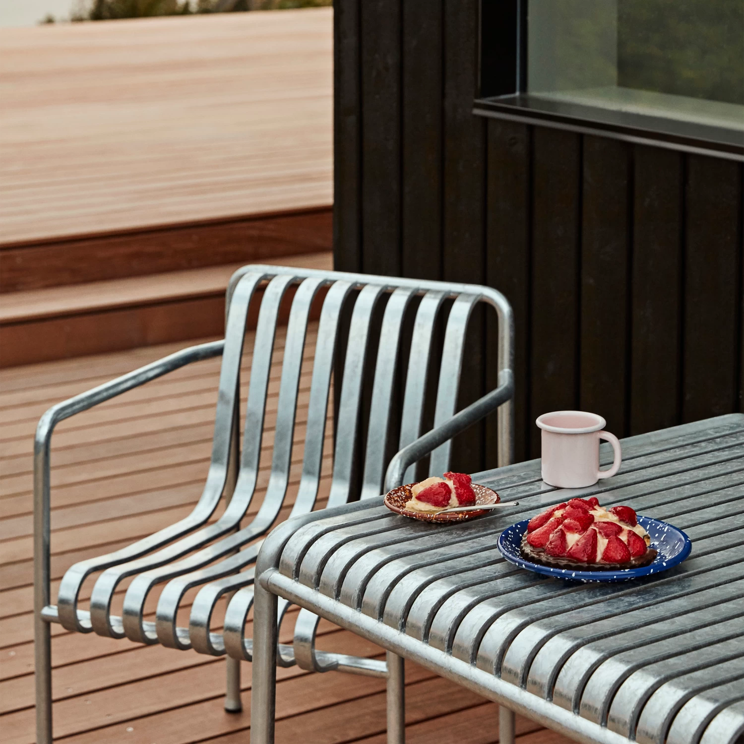A modern classic already – Palissade is a collection of outdoor furniture for HAY in powdercoated or hot galvanised steel. NEW for 2023 is the rich Iron Red colourway, a perfect contrast for greenery.