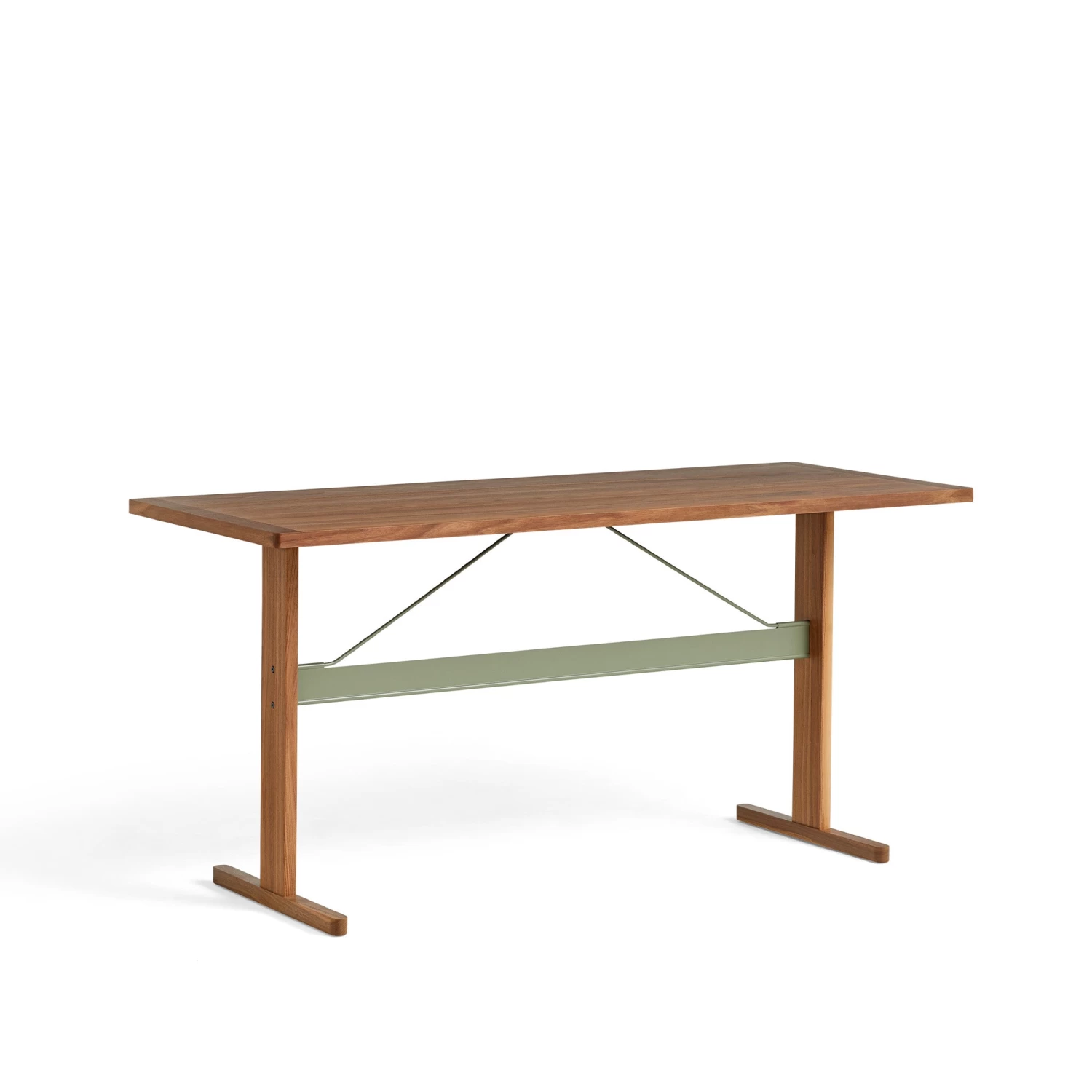 Veneer tabletop has 70 mm cross stitched veneer on short ends. Water-based lacquered solid wood frame, veneered plywood upright with solid wood edges.