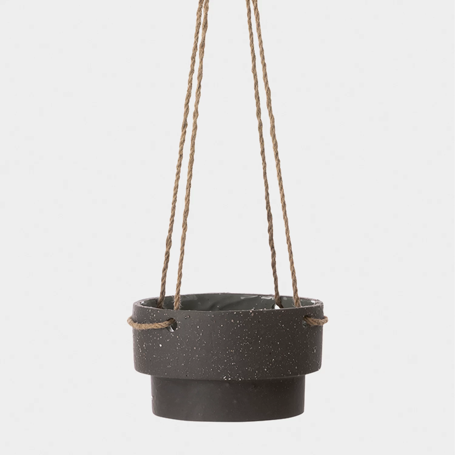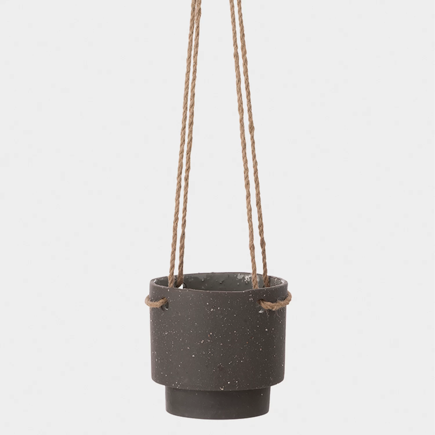 Bring plants into your home with this beautiful geometric plant hanger. It is made in stoneware with a natural rope suspension, which gives it a retro feel. However, the clean shapes makes it perfect for a modern home. Two sizes available.