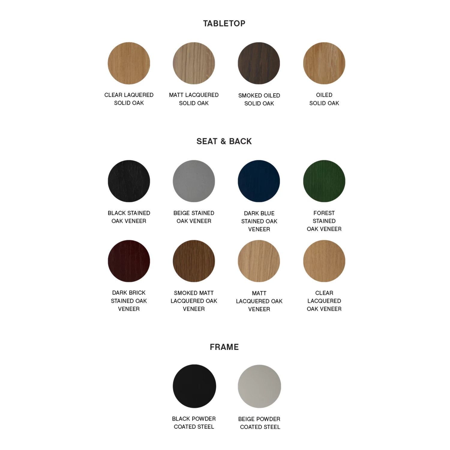 21 mm solid oak tabletop with straight edge. 2 x leg sections in 2 mm bent cutout sheet steel. 1 x support bar (steel tube and 2 mm bent steel) pre- mounted underneath the benchtop.