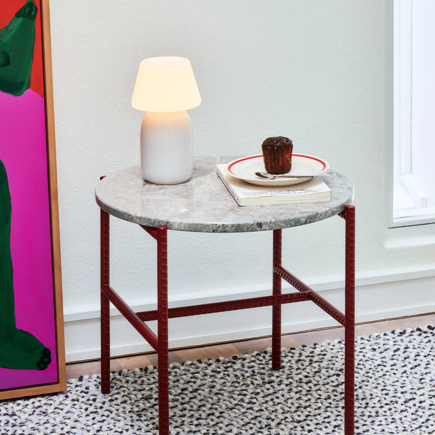 Sylvain Willenz’s Rebar collection is a series of coffee, side, and tray tables that explore the possibility of reconsidering construction materials and processes. The design juxtaposes the reinforced steel bar frame with marble tops and metal trays to create a fresh, balanced aesthetic.