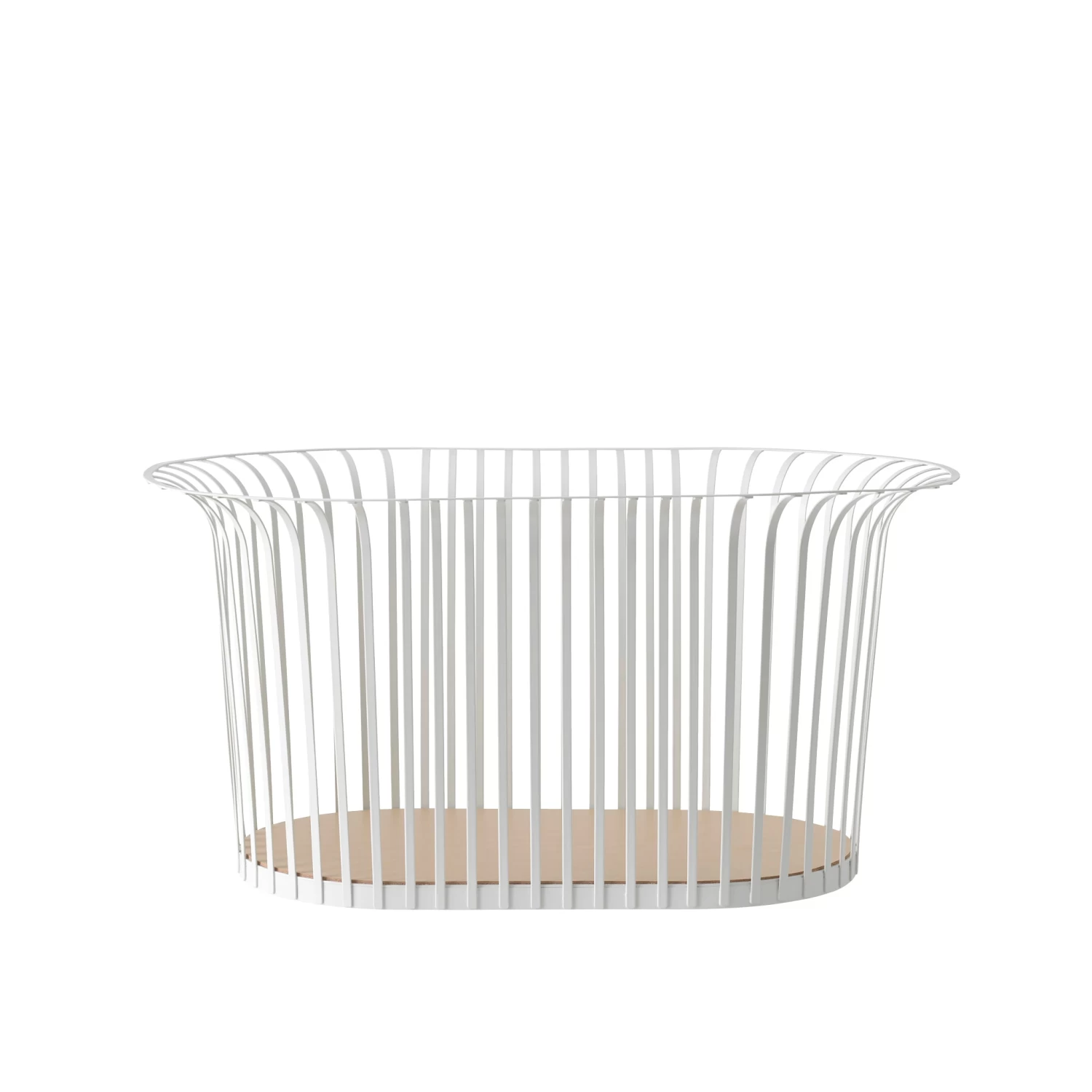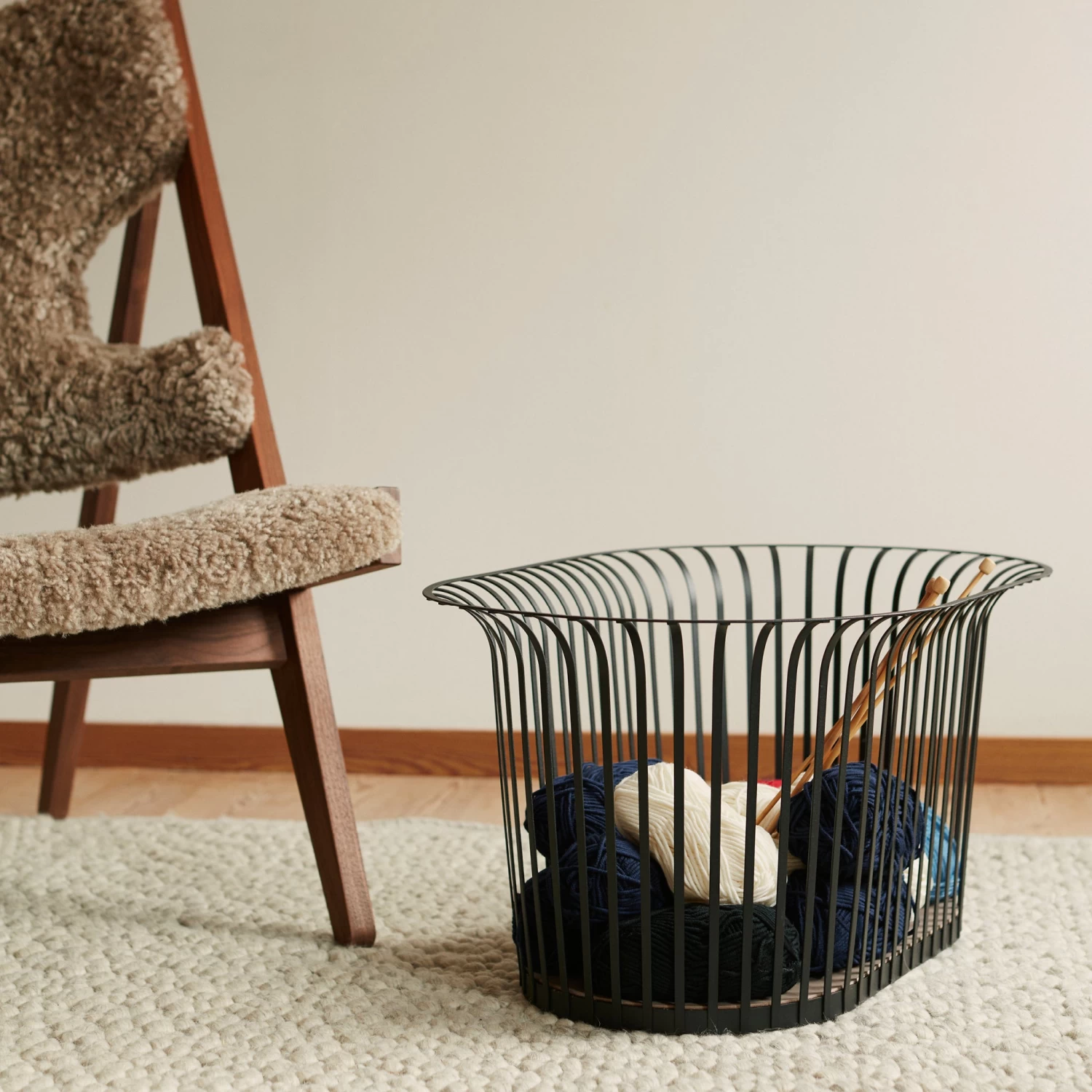 A modern storage solution with a traditionalist feel, the Ribbon Basket contrasts sleek powder coated steel with soft, inviting curves. Crafted with precision, vertically positioned metal strips are formed into a gently rounded lip that makes it easy to carry the basket from room to room.