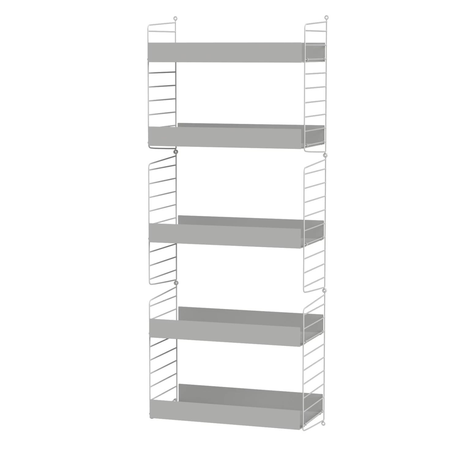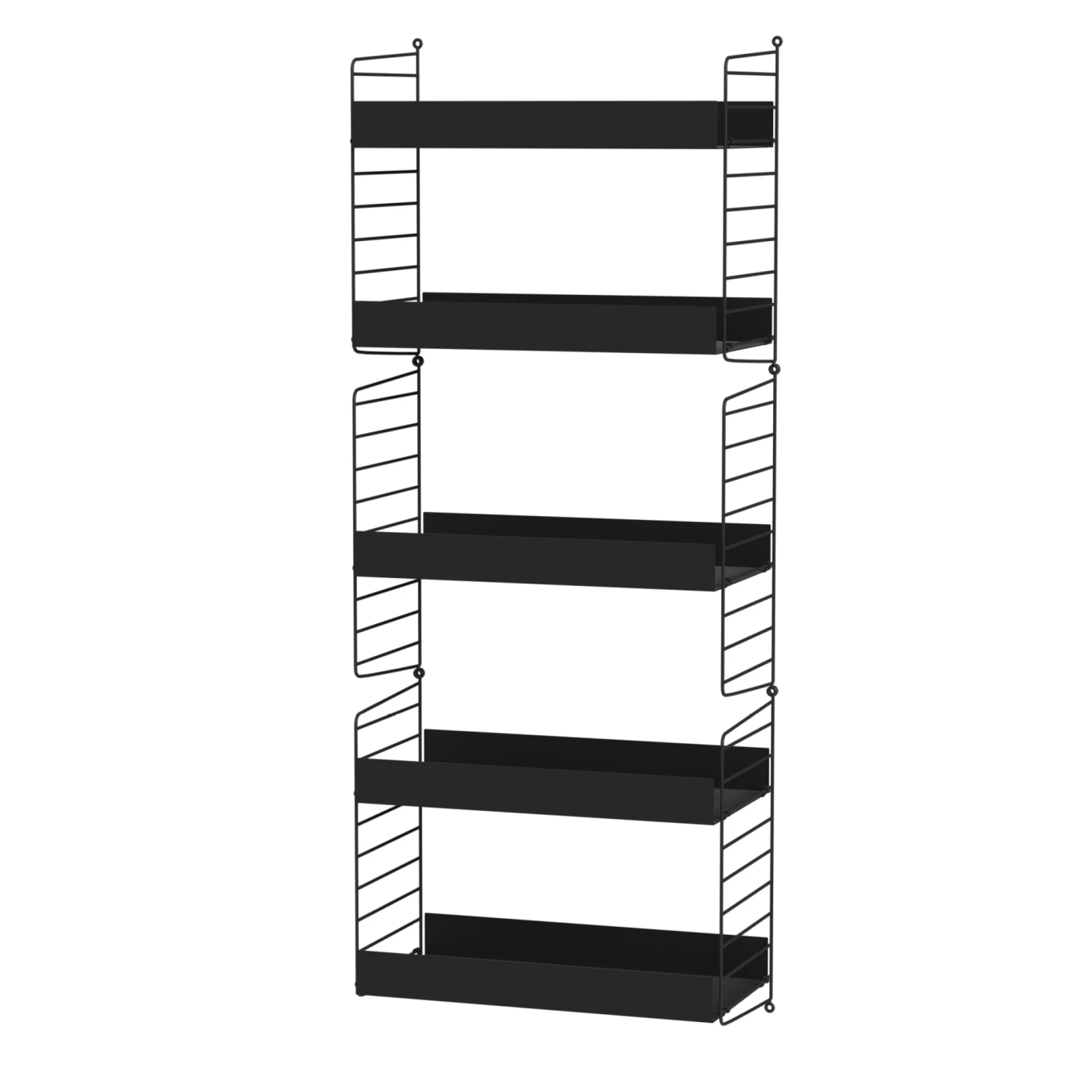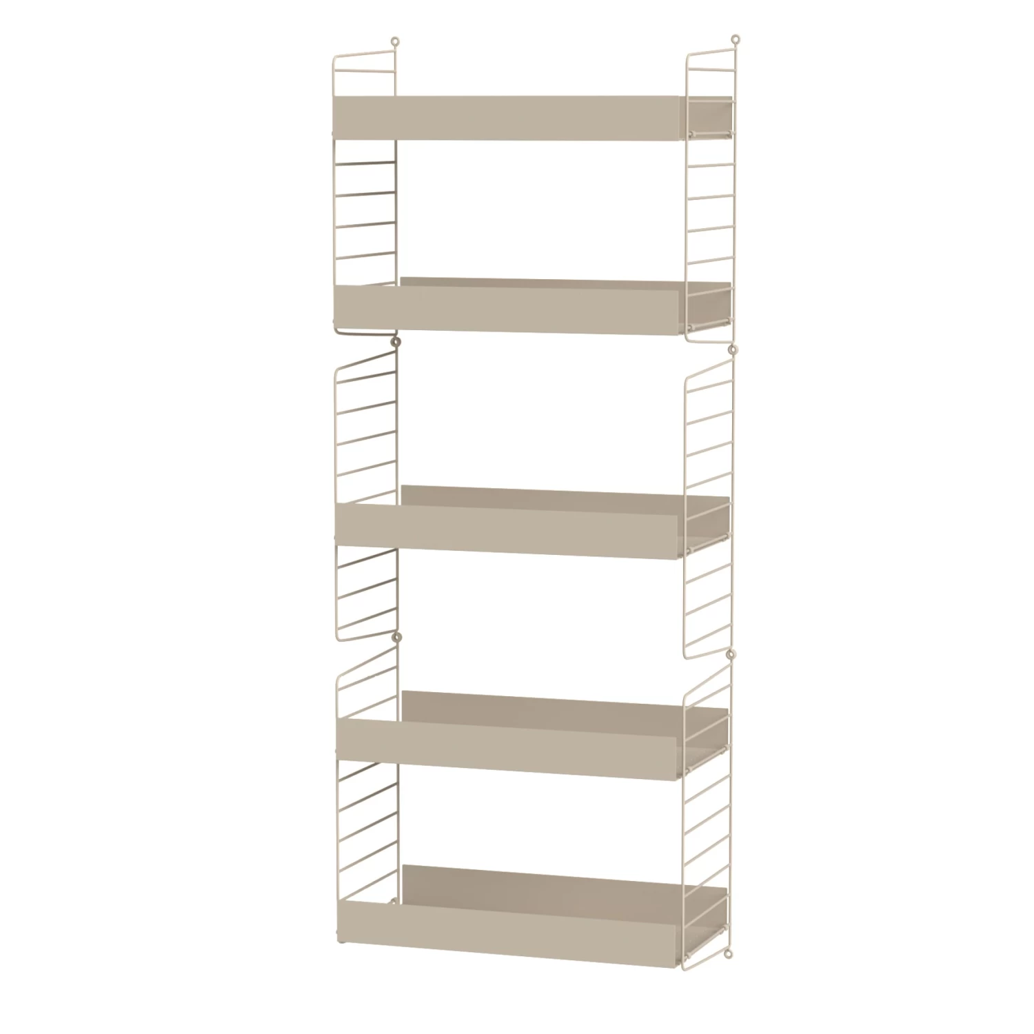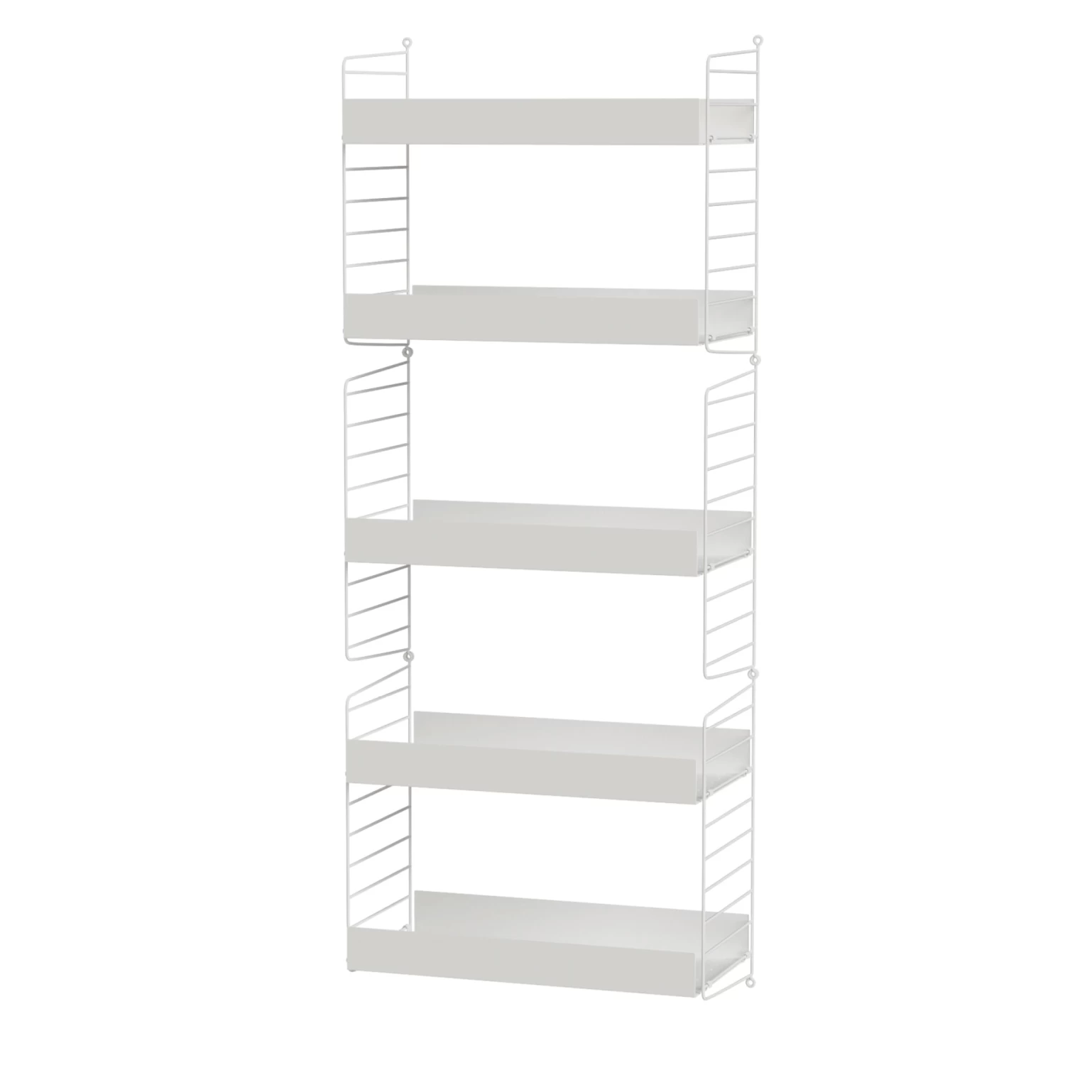 The String Living Room Bundle BÂ is a smaller wall-hung living room combination that works great as a complement in a larger living room, or as a stand-alone shelf in a smaller living room. The metal shelves with high edge adds character to the otherwise simple shelf.