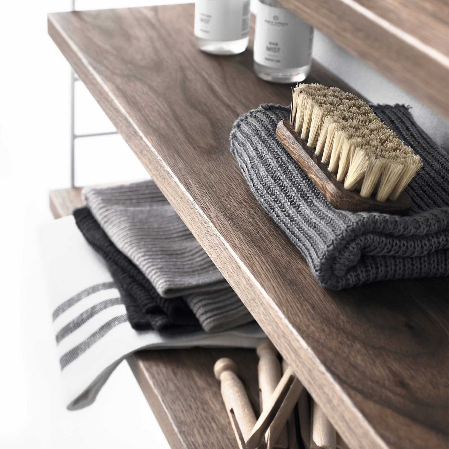 Create a monochrome shelf or mix shelves in different colours and types of wood. Each packaging contains three shelves and brackets.