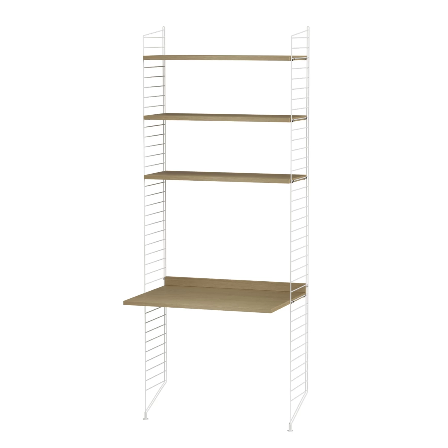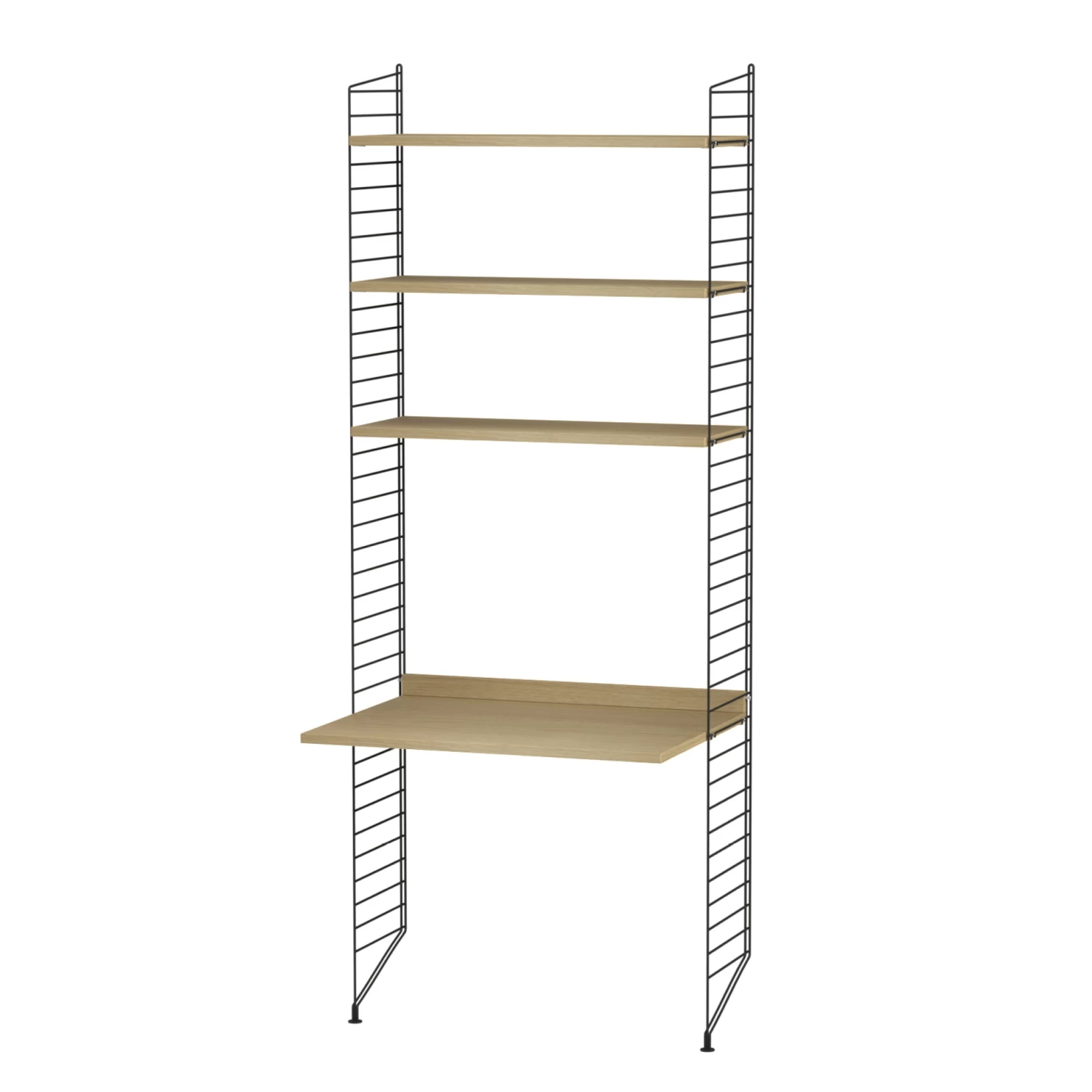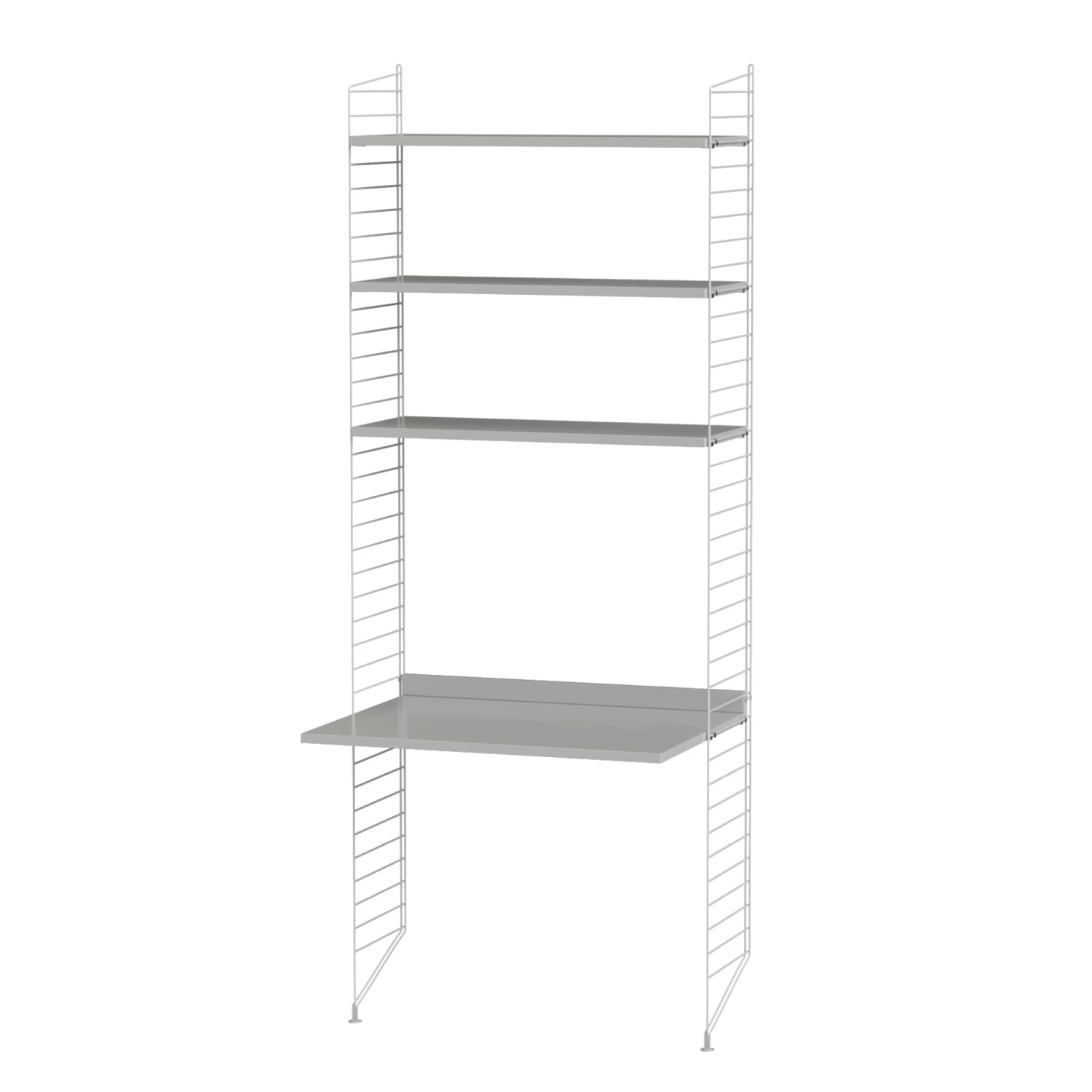Whether your workspace is at the office or at home, the String Workspace Bundle A is a solution that covers all your needs. This floor mounted one-section combination with three shelves and a work desk is simple and elegant for a workspace where space is scarce.