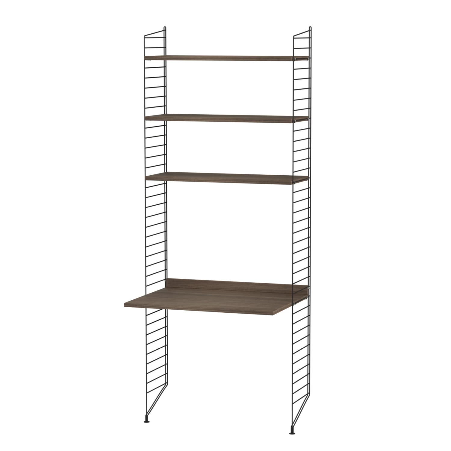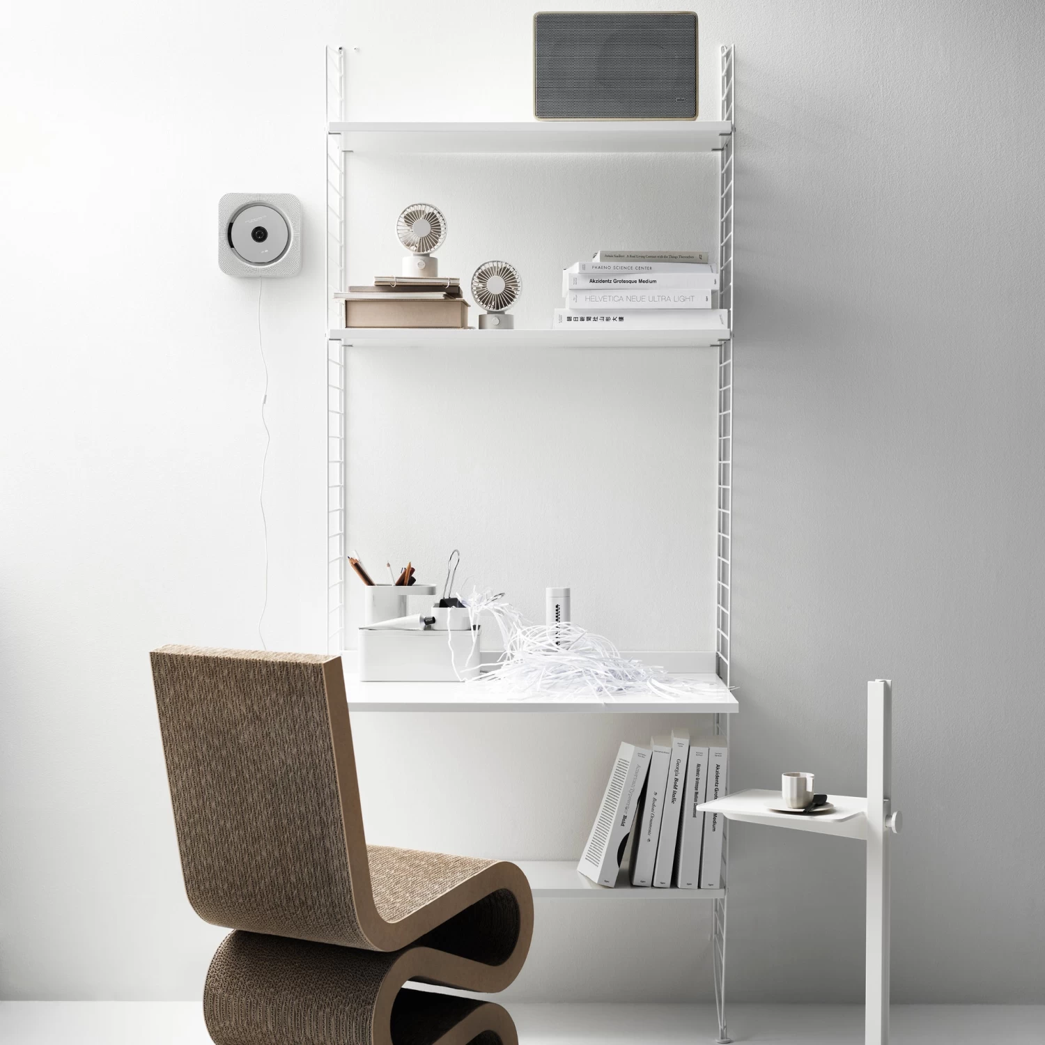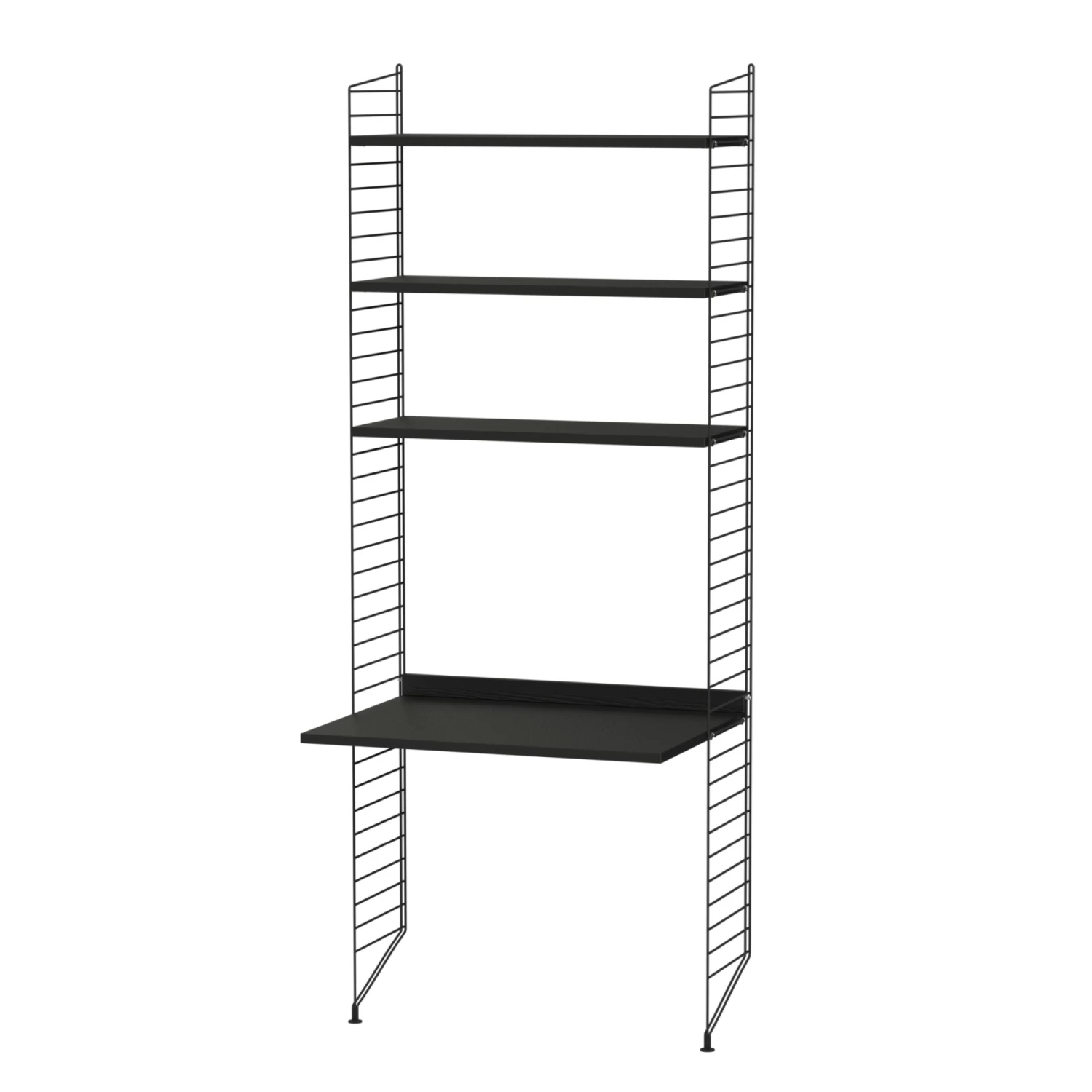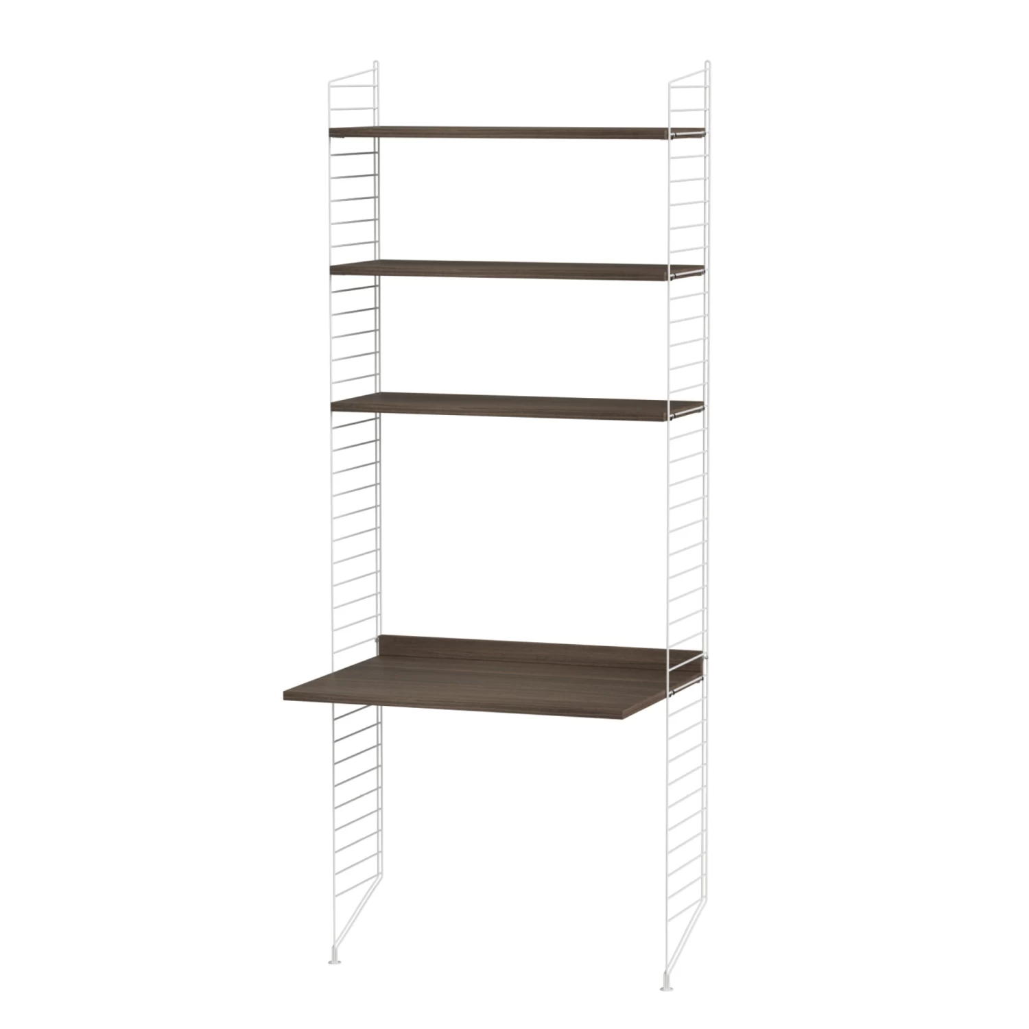 Whether your workspace is at the office or at home, the String Workspace Bundle A is a solution that covers all your needs. This floor mounted one-section combination with three shelves and a work desk is simple and elegant for a workspace where space is scarce.