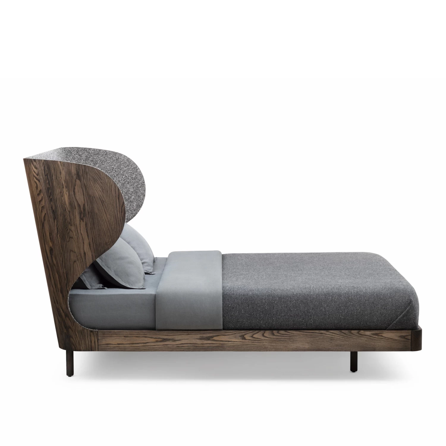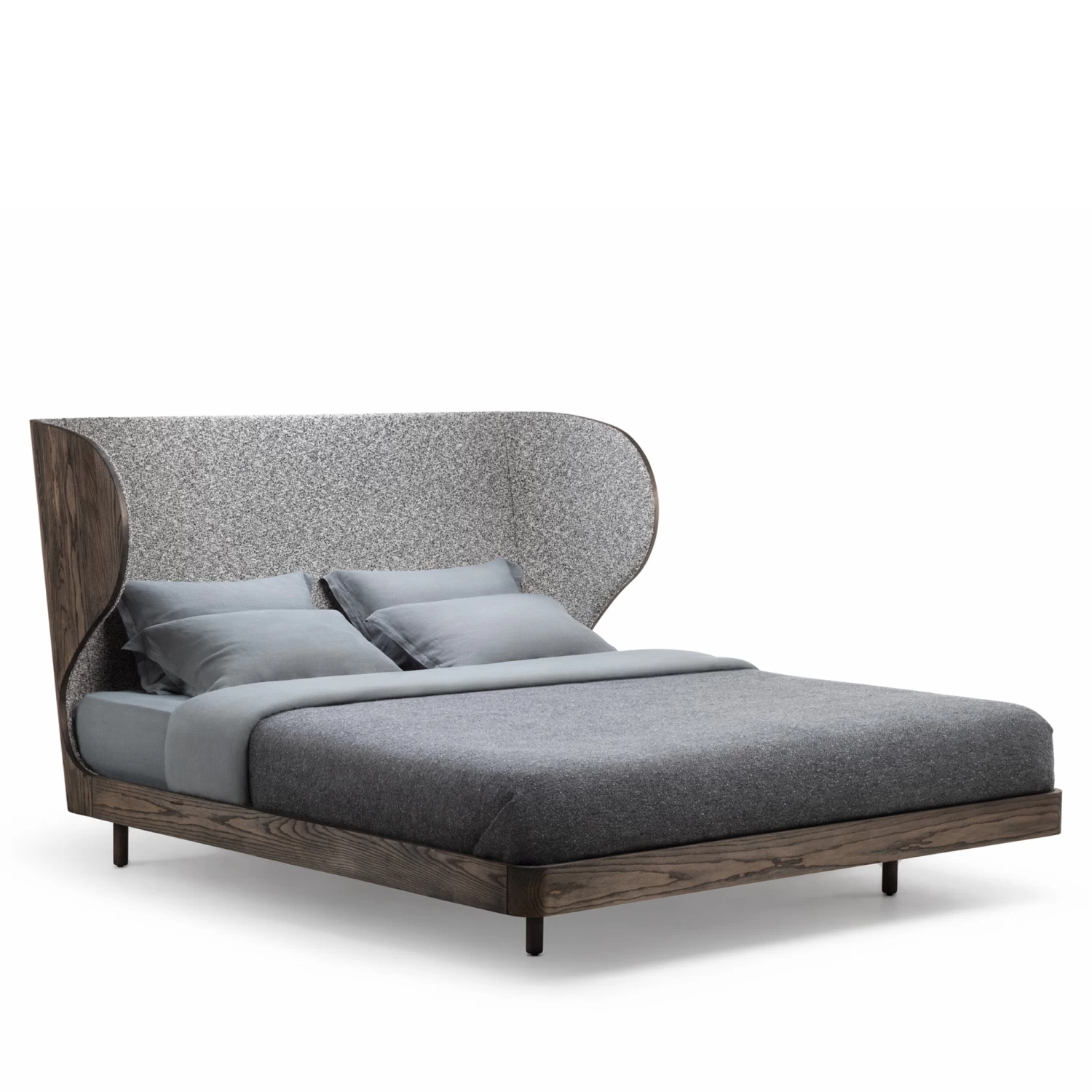 Initially designed for Autoban studio’s Witt Istanbul Suites project, Suite Bed features a dramatic wrap-around timber headboard, with its inner face softened by upholstery. Covered in a variety of fabrics, this headboard with soft round corners, embraces its user. The resulting shape makes every bedroom feel cosy.