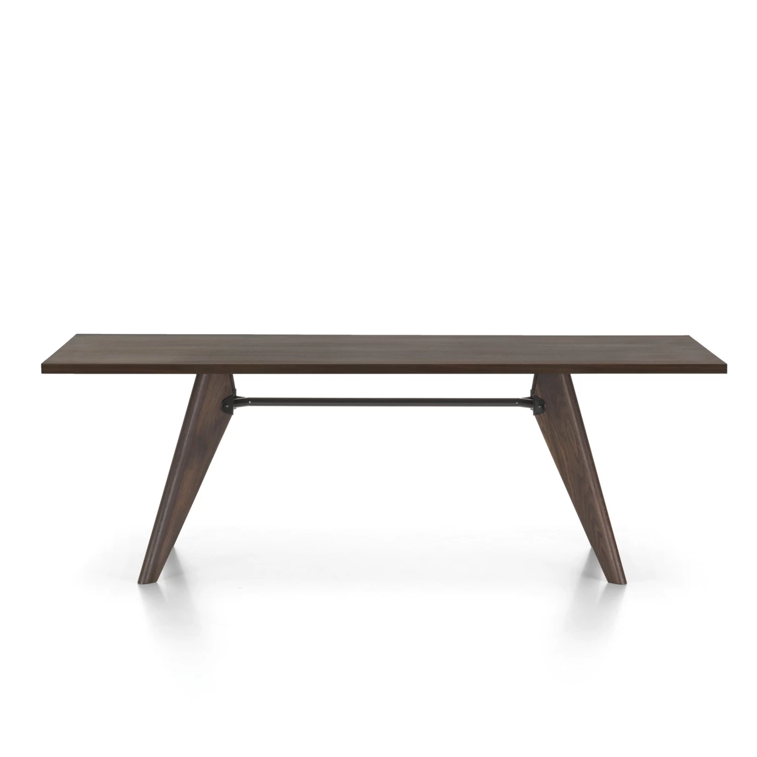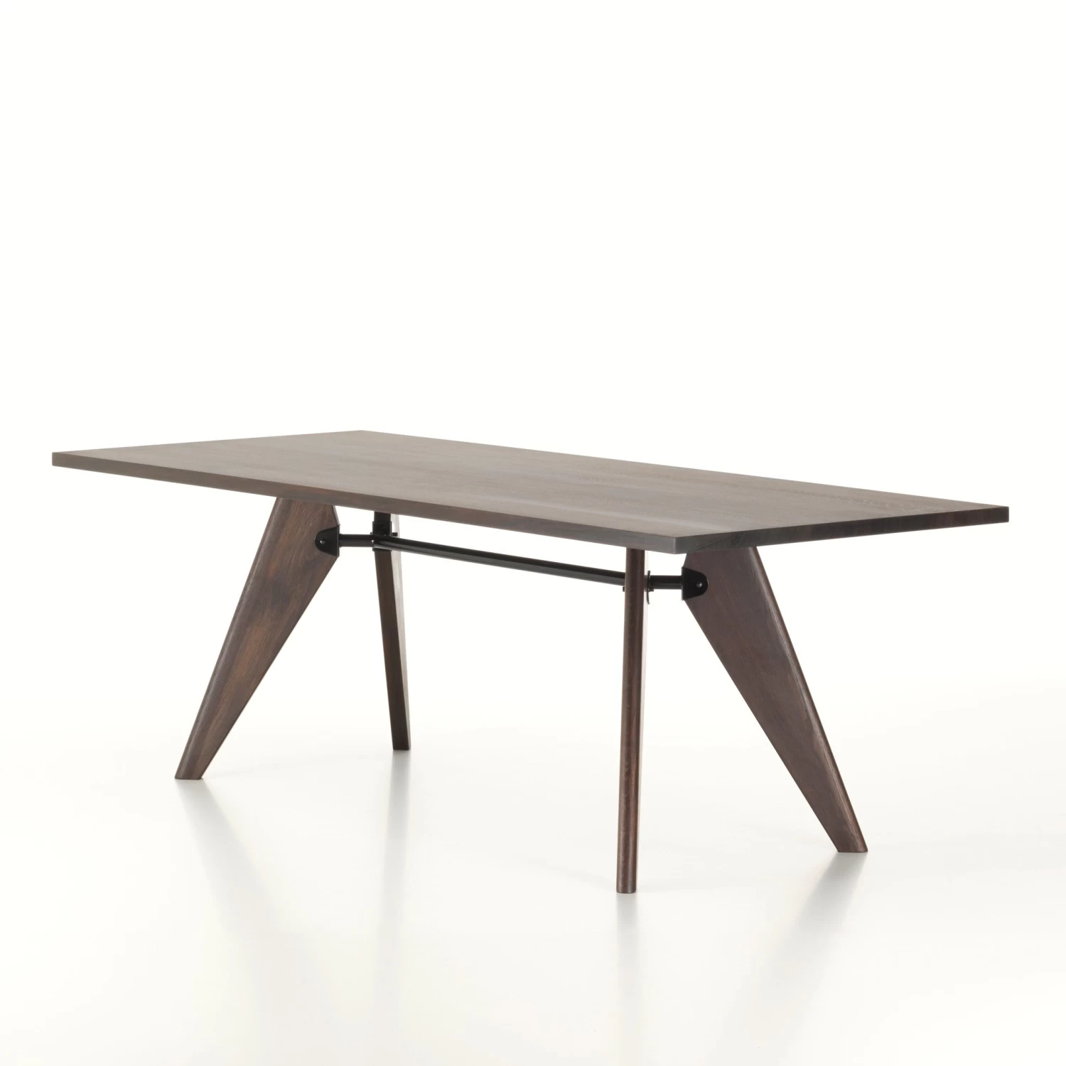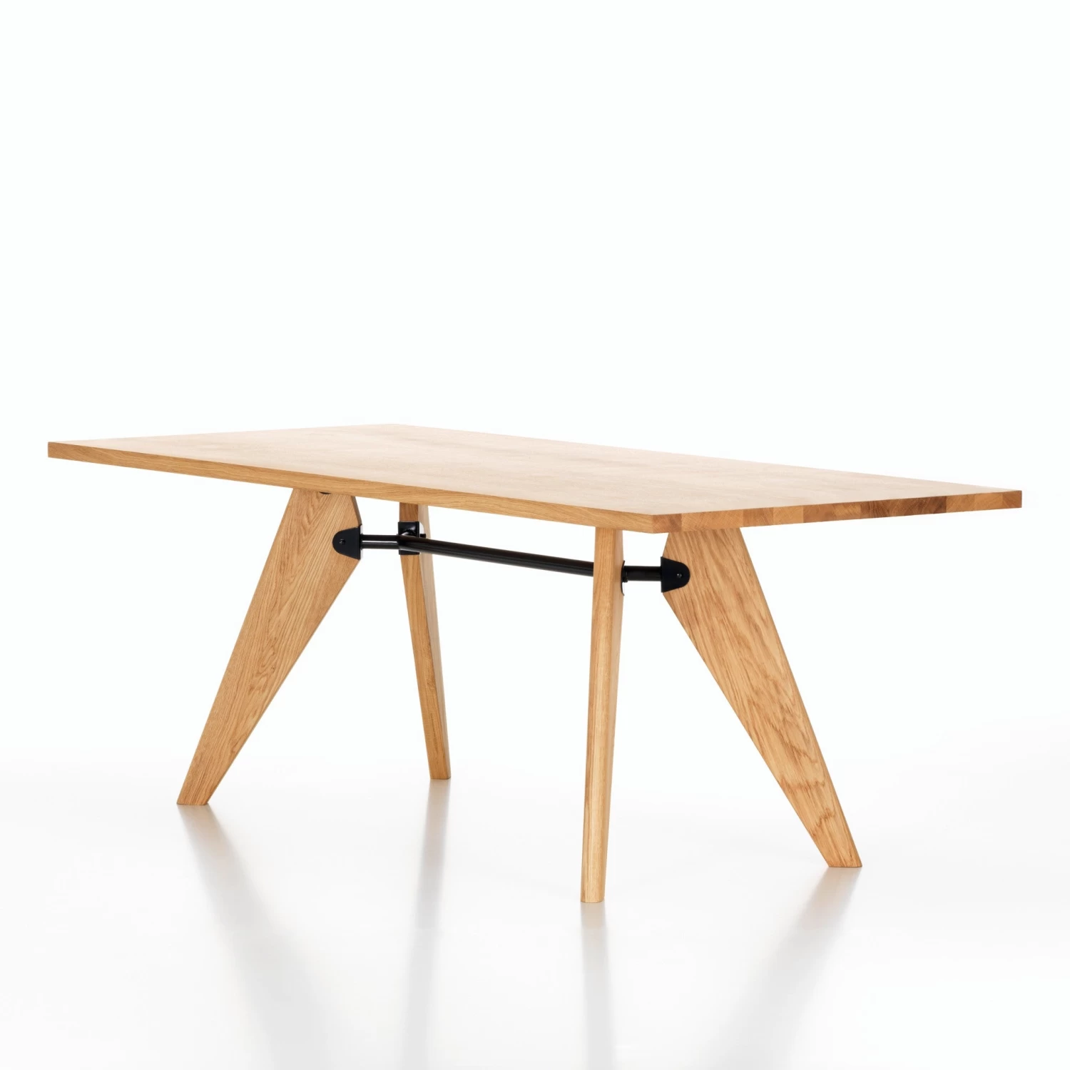 Originally designed for the Solvay chemical company, this table’s structural details illustrate the interplay of forces and stresses. The solid wood components and fine oiled finish of the Solvay table give it a sense of ease and refinement, mitigating the technical coolness of its design.