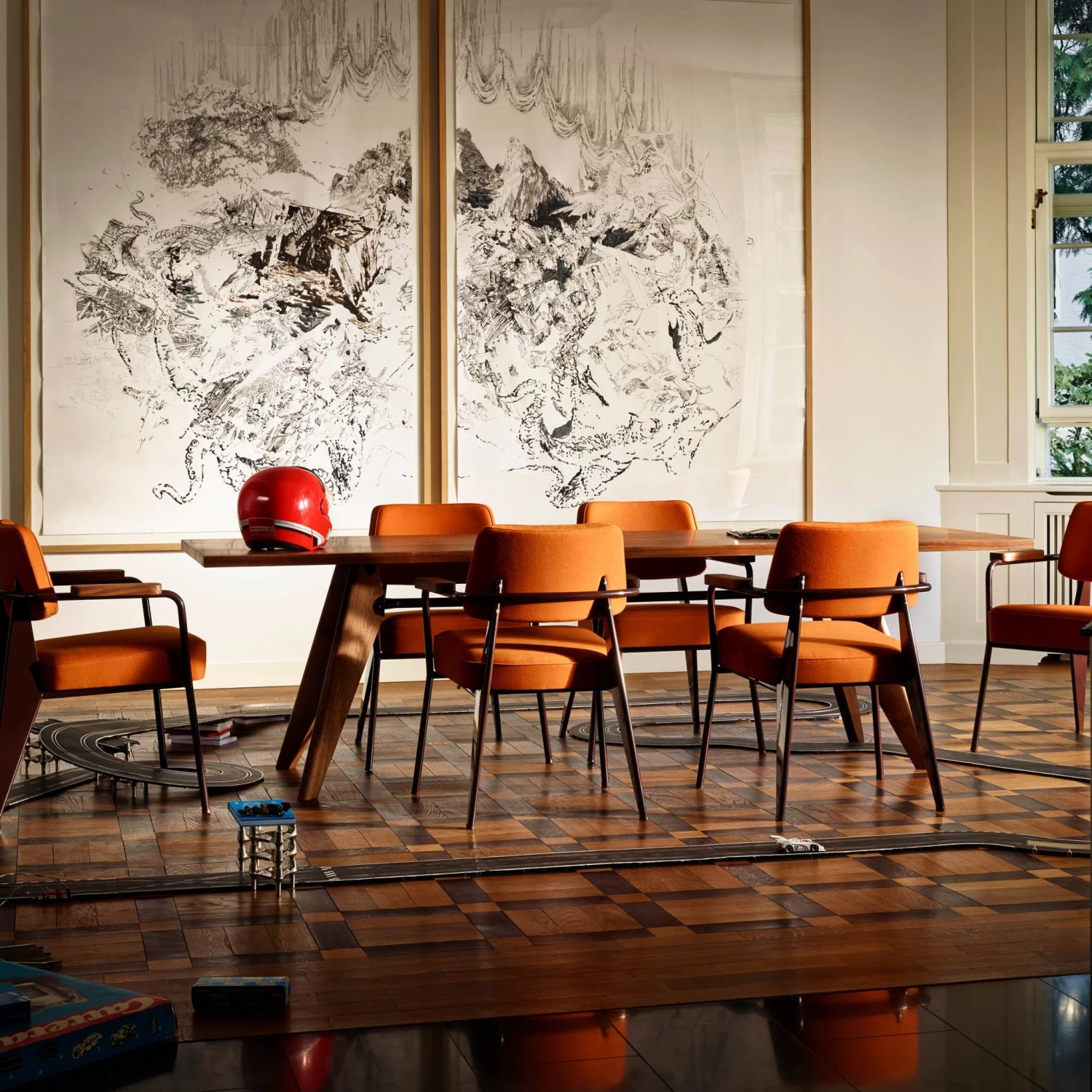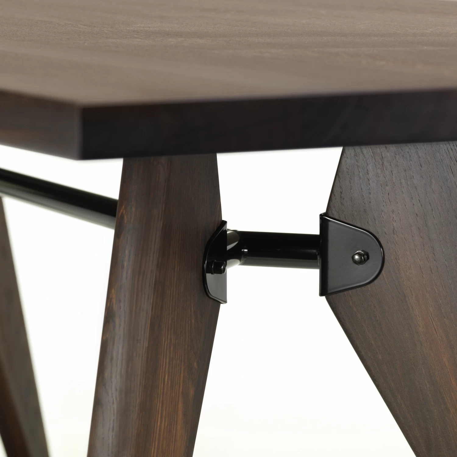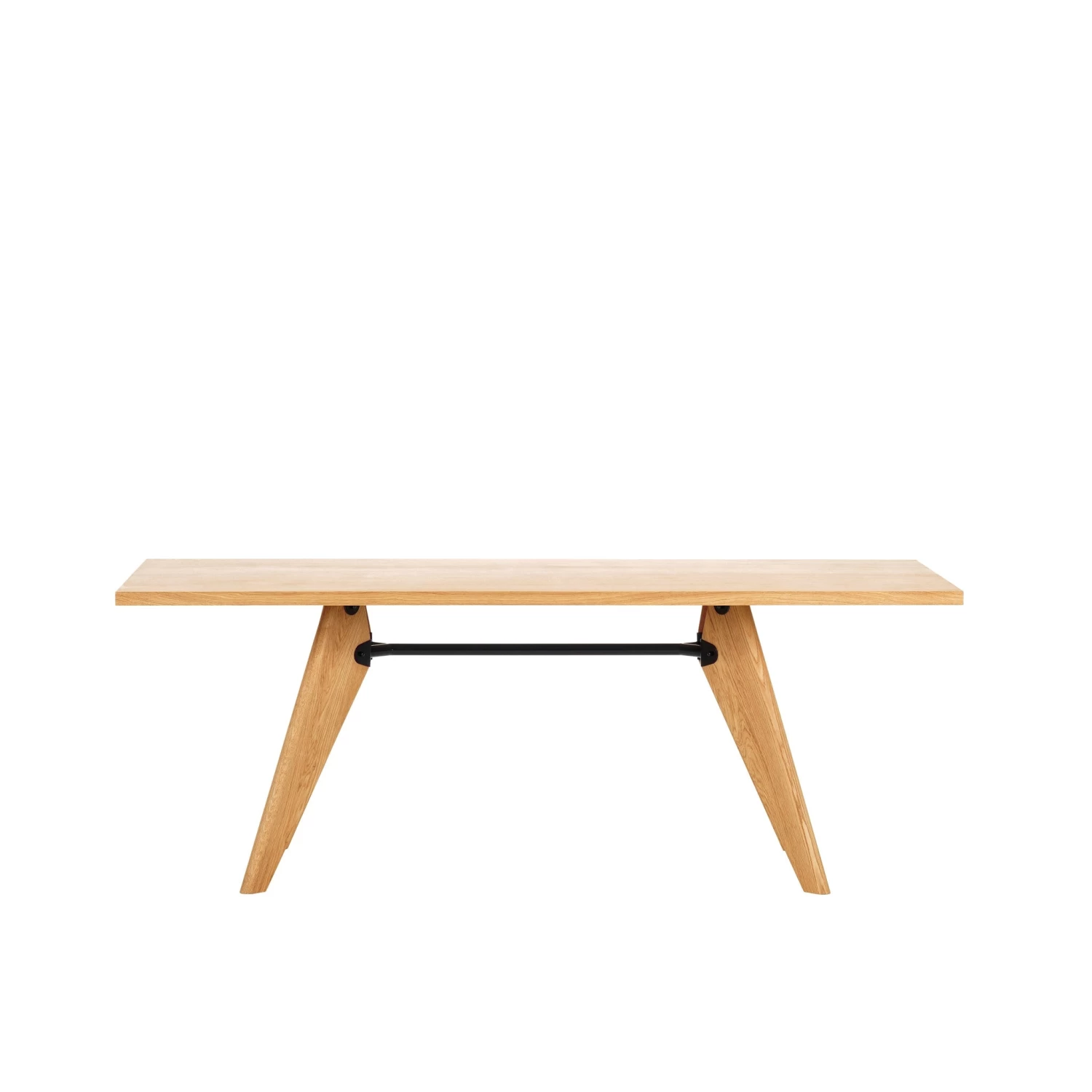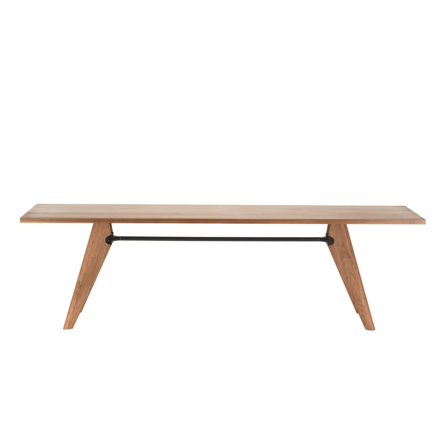 Originally designed for the Solvay chemical company, this table’s structural details illustrate the interplay of forces and stresses. The solid wood components and fine oiled finish of the Solvay table give it a sense of ease and refinement, mitigating the technical coolness of its design.
