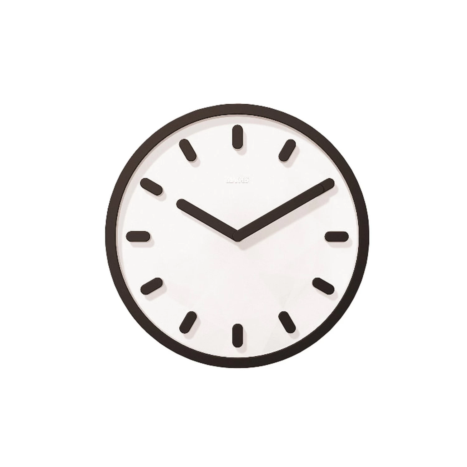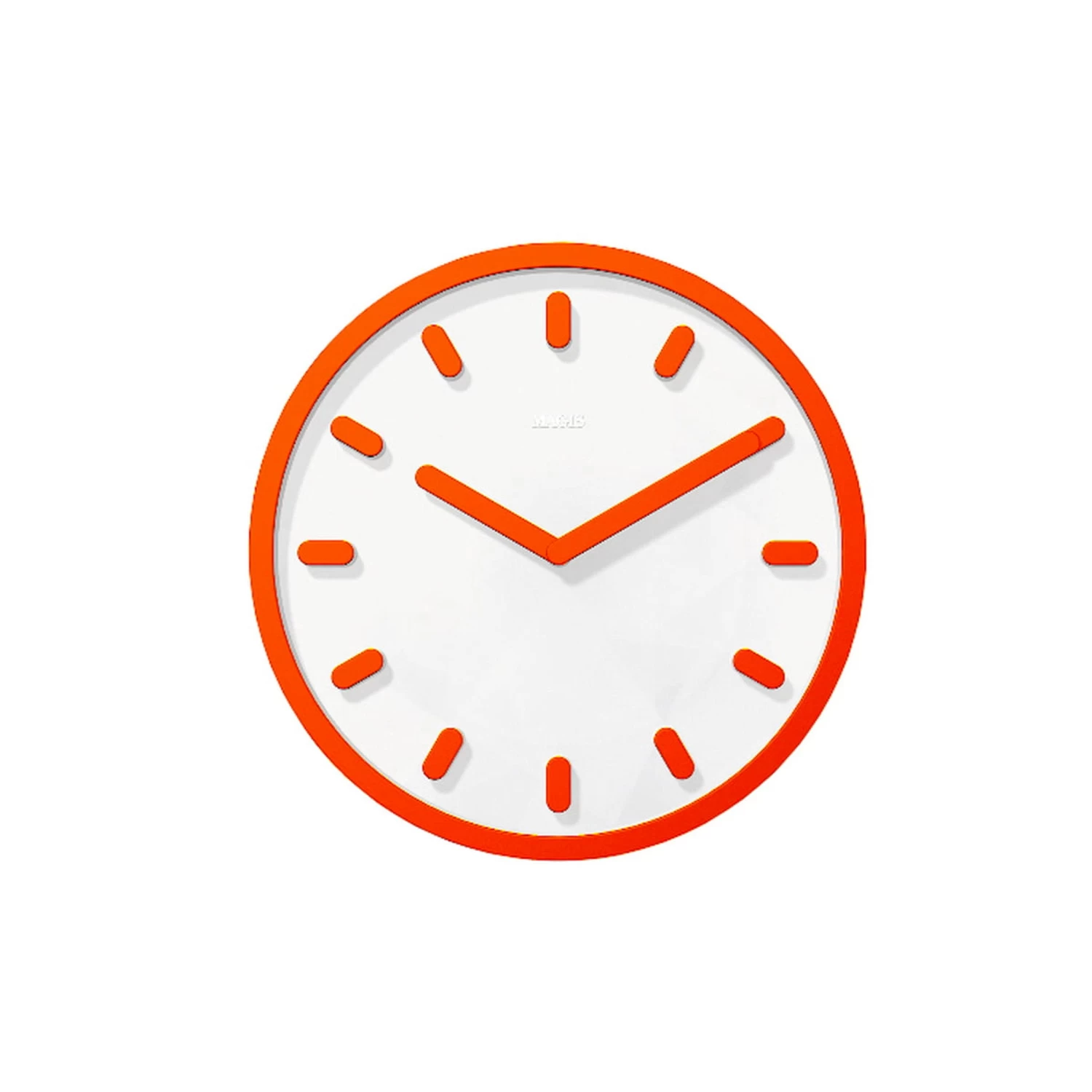 This simple wall clock designed by Naota Fukasawa features hands, frame and marks in black, grey or orange.