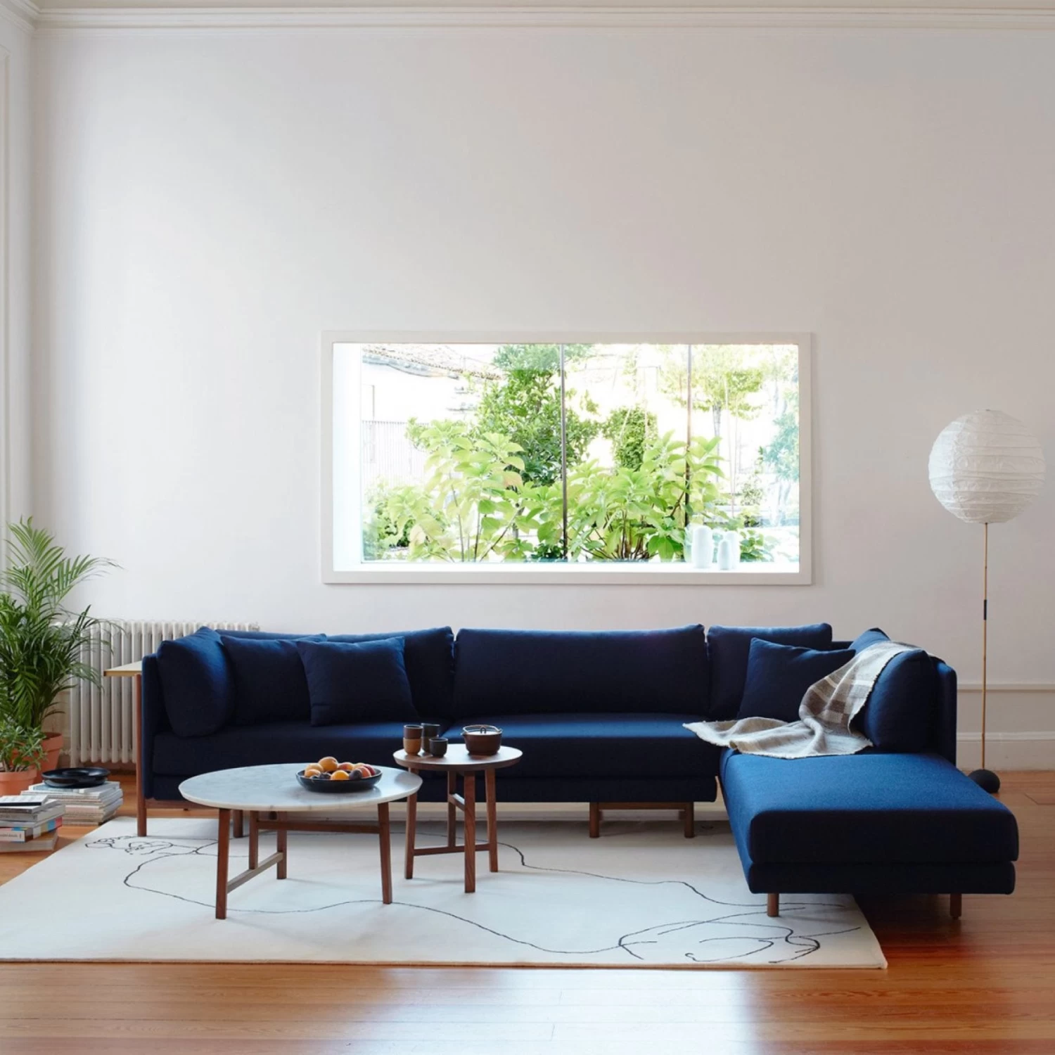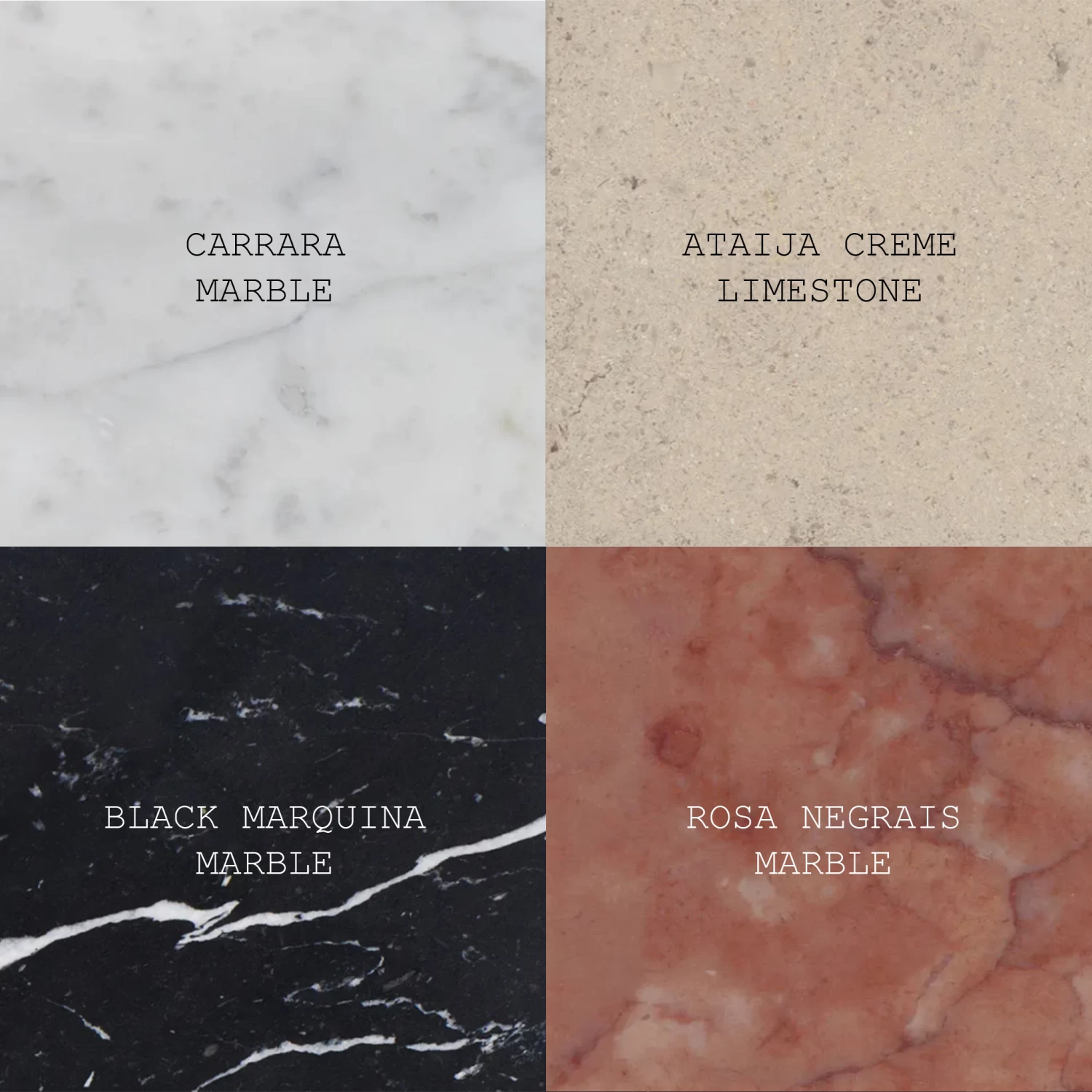 Available in walnut, oak, or ash in a range of finishes with top in Carrara marble, Rosa Negrais marble, Black Marquina marble, or Ataija Creme limestone