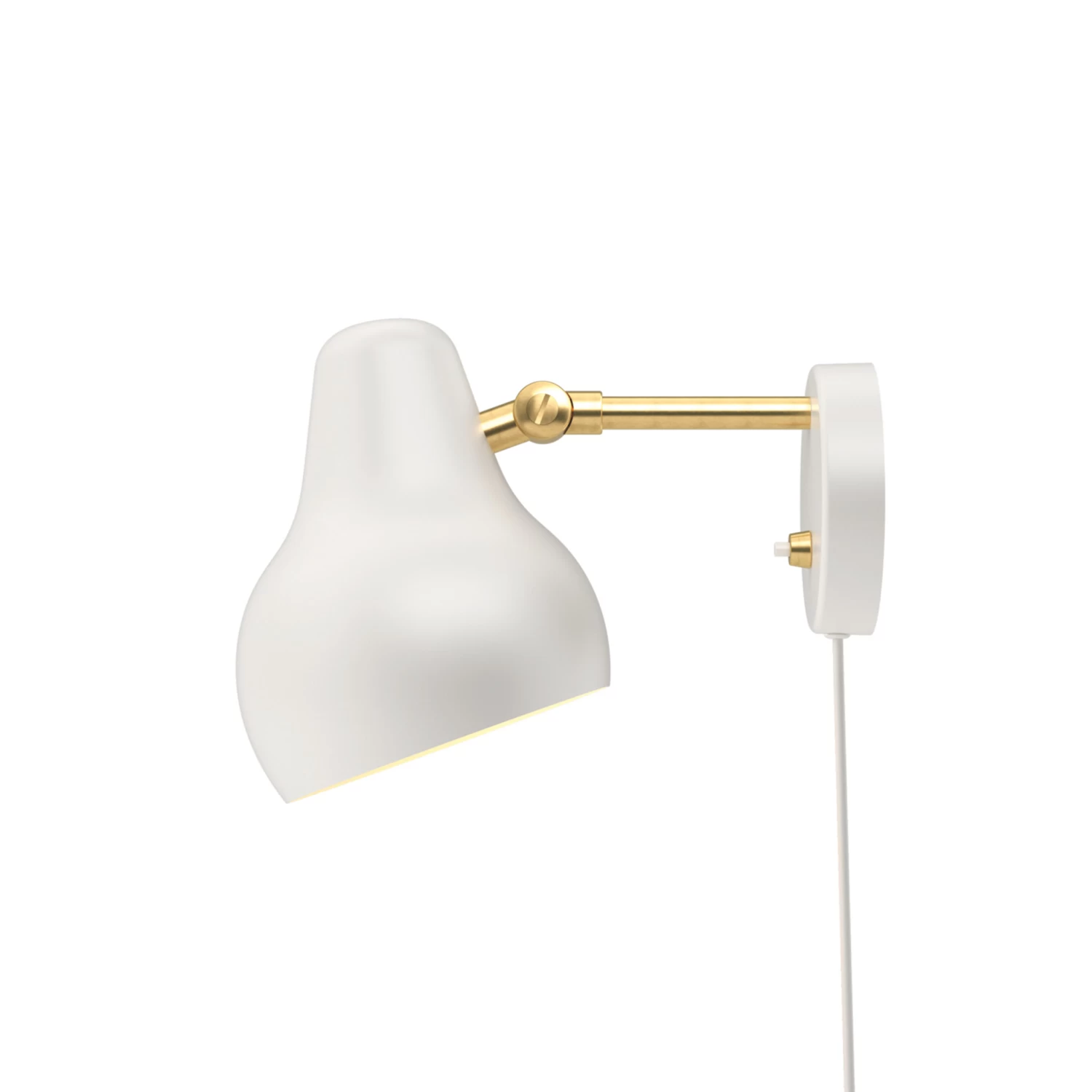 Shade: white powder coated spun aluminium. Base: die cast aluminium. Stem:Â brushed brass – please note this is untreated and will patinate over time.