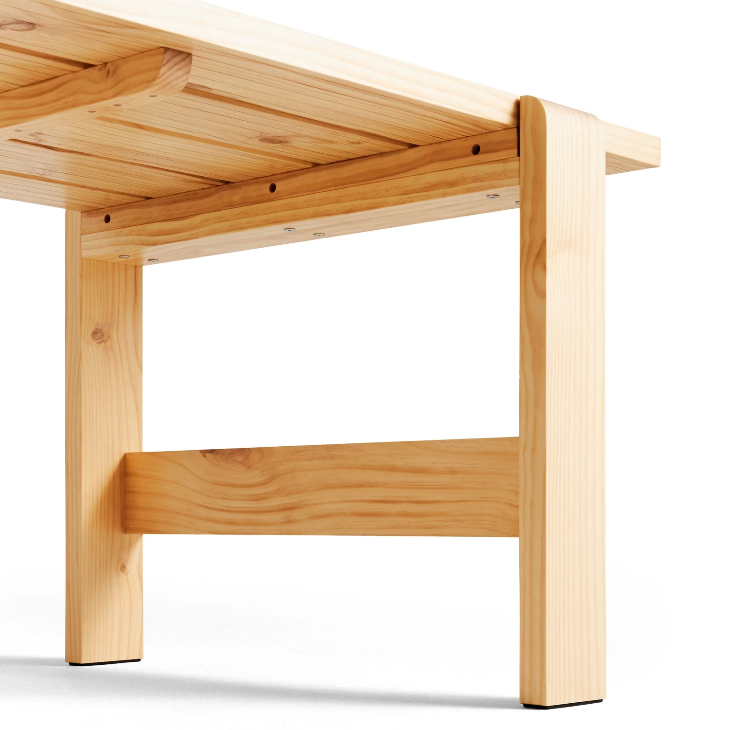 Featuring the same simple construction as the classic picnic table, it is made in strong, durable pine planks that will patinate beautifully and last for many years to come. The water-based, weather-resistant surface treatment makes it suitable for both inside and outside use in a wide range of settings, from cafés and public parks to private or shared gardens.